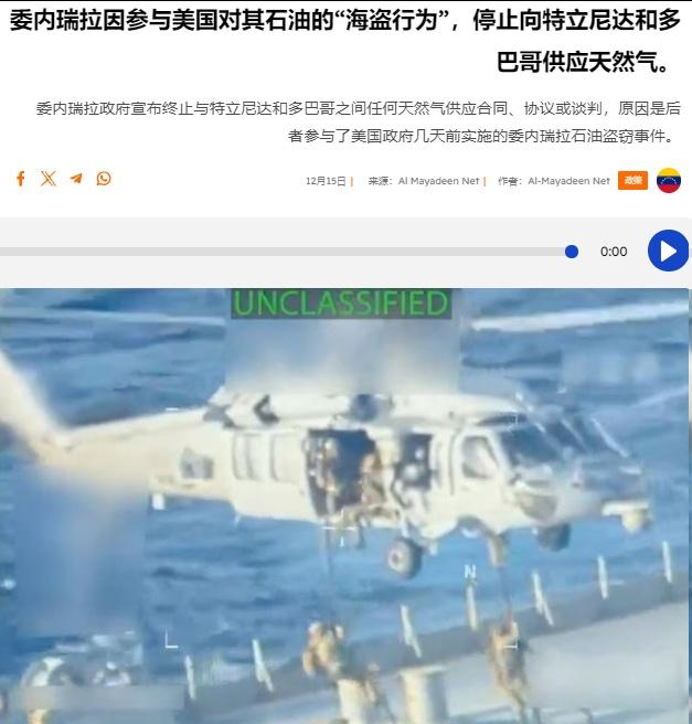 委内瑞拉政府宣布,为报复特立尼达和多巴哥协助美军扣押一艘委内瑞拉油轮的行动,委内瑞拉将终止与特立尼达和多巴哥之间任何天然气供应合同、协议或谈判。