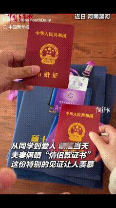 一夜之间,不但河南人民见“证”了,就连全国人民也见“证”了!郑州大学有一对情侣,从同学到爱人,领证当天不是秀恩爱,而是晒出了“情侣款证书”来证明对彼此的爱意。 网友:“这才是势均力敌的爱情啊!” 大家都知道,人的一生这证那证,要是都有那说都说不明白。而郑州大学的这对情侣,在学业的这段路上,从本科到研究生,一路携手并进,拿到了很多同款证书。 从一开始的本科英语专业四级和八级证书,奖学金证明,本科毕业证,教师资格证,研究生毕业证,硕士学位证…等等,最后一本是结婚证,他们携手共进终走到了一起。 当事人罗女士说:“她们二人是同一专业的,所以考的证书都比较雷同,领结婚证的时候,就想着把证书放在一起看看。当时拍的时候,就感觉如果上学的时候再努力一点,还能拿更多的证书。” 网友看完这段视频,都羡慕了:“几百页的聊天记录秀恩爱,也比不上一模一样的证书。” 也有网友说:“这才是真正的门当户对,三观契合,兴趣相投,比翼双飞。” 其实,说到底这哪里是什么“情侣款证书”啊,这分明是他们爱情路上,一步一个脚印踩出来的“同款勋章”!比起那些风花雪月的誓言,这份沉甸甸的“战绩”,显然更能让人心安。 当然,也许有人会说,不是每个人都有机会和爱人一起考研,拿一样的证书。没错,生活的赛道千千万万。但这对情侣告诉我们:真正的“门当户对”,是精神上的同频共振,是成长路上的并肩前行。 爱情美好的样子,不是找一个完美的人,而是找一个愿意和你一起,把生活过得热气腾腾、闪闪发光的人。 看到这对情侣终走到一起幸福的样子,我们仿佛也看到了爱情本真的模样,让人由衷地相信,努力奋斗的人,终将配得上这世间所有美好的相遇。