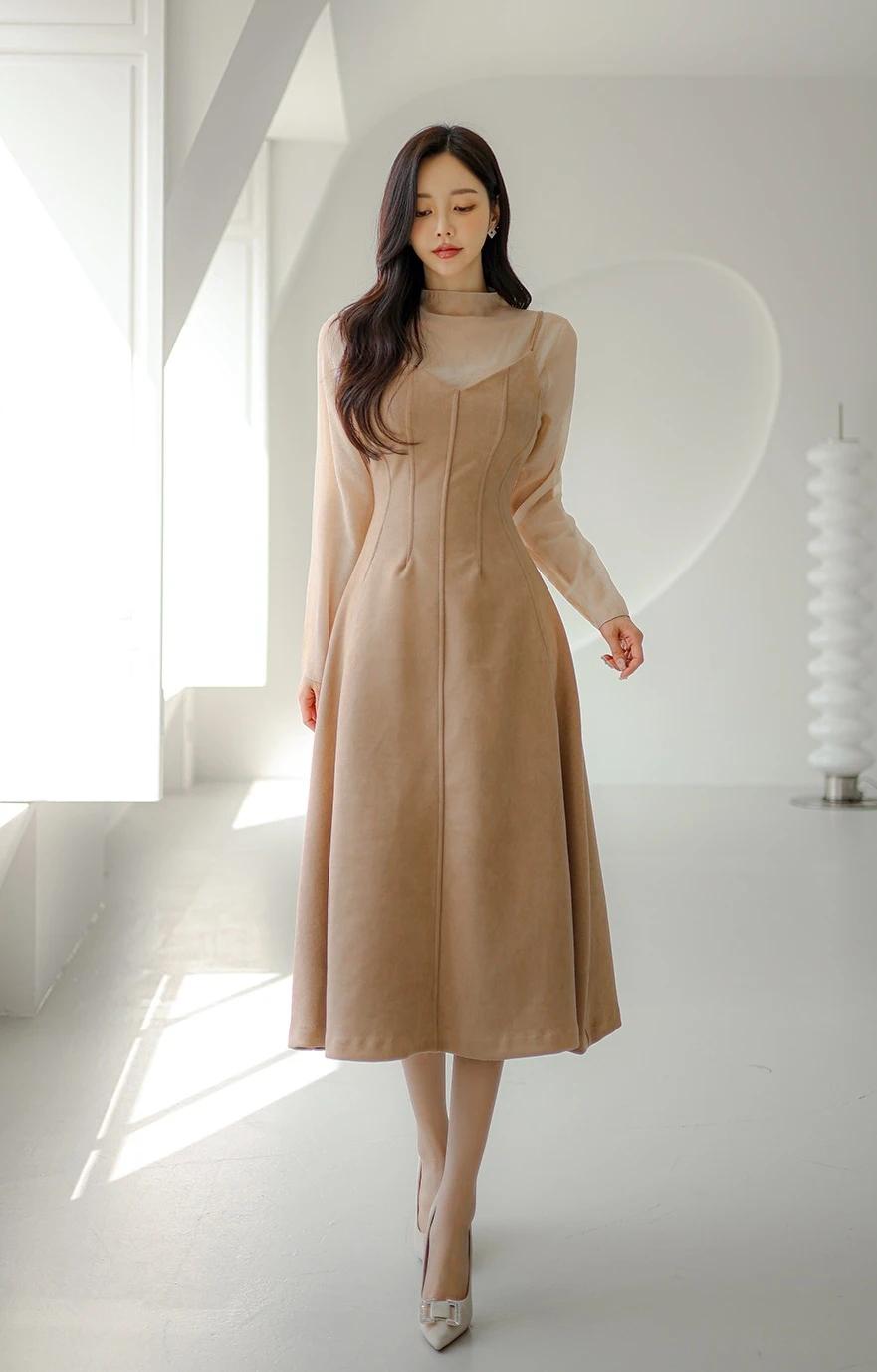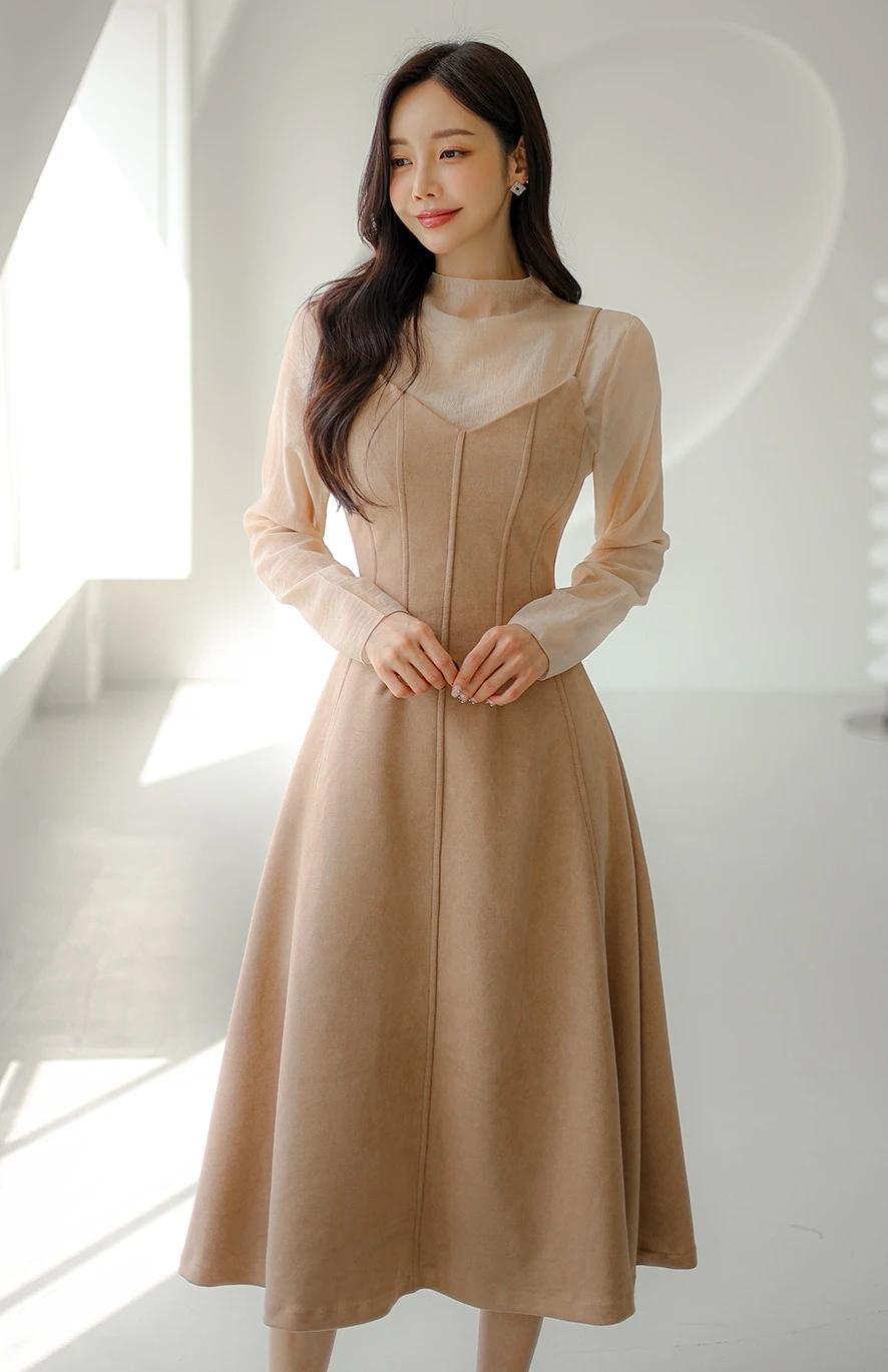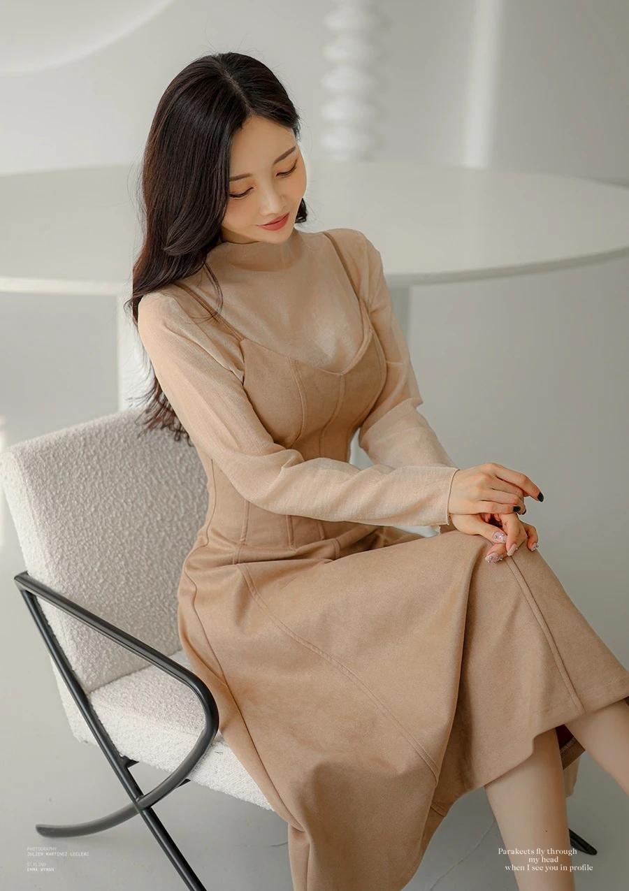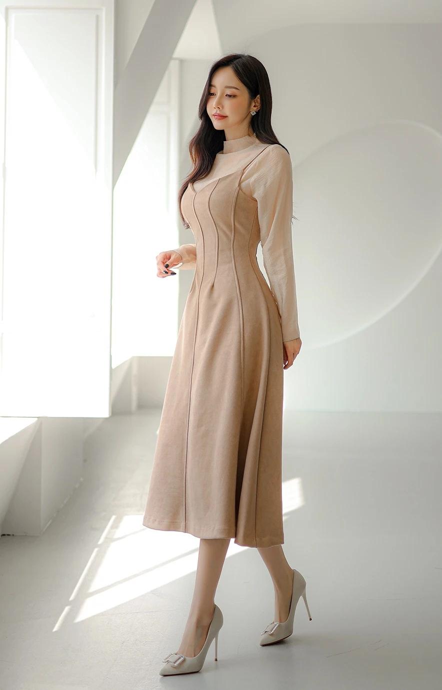 孙允珠-穿着一条米色长裙,优雅动人。每日搭配分享·时尚穿搭 今天你记录穿搭了吗?