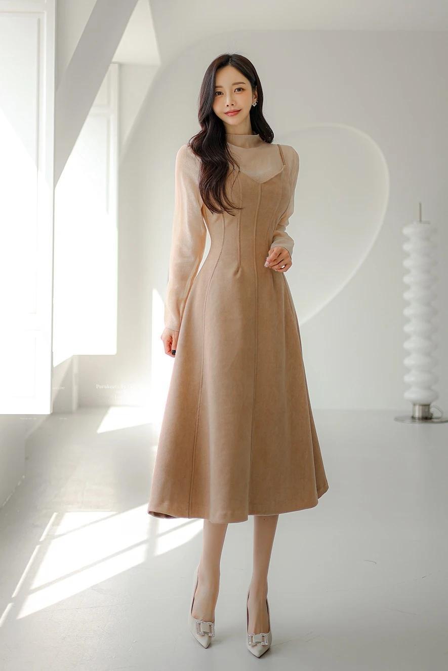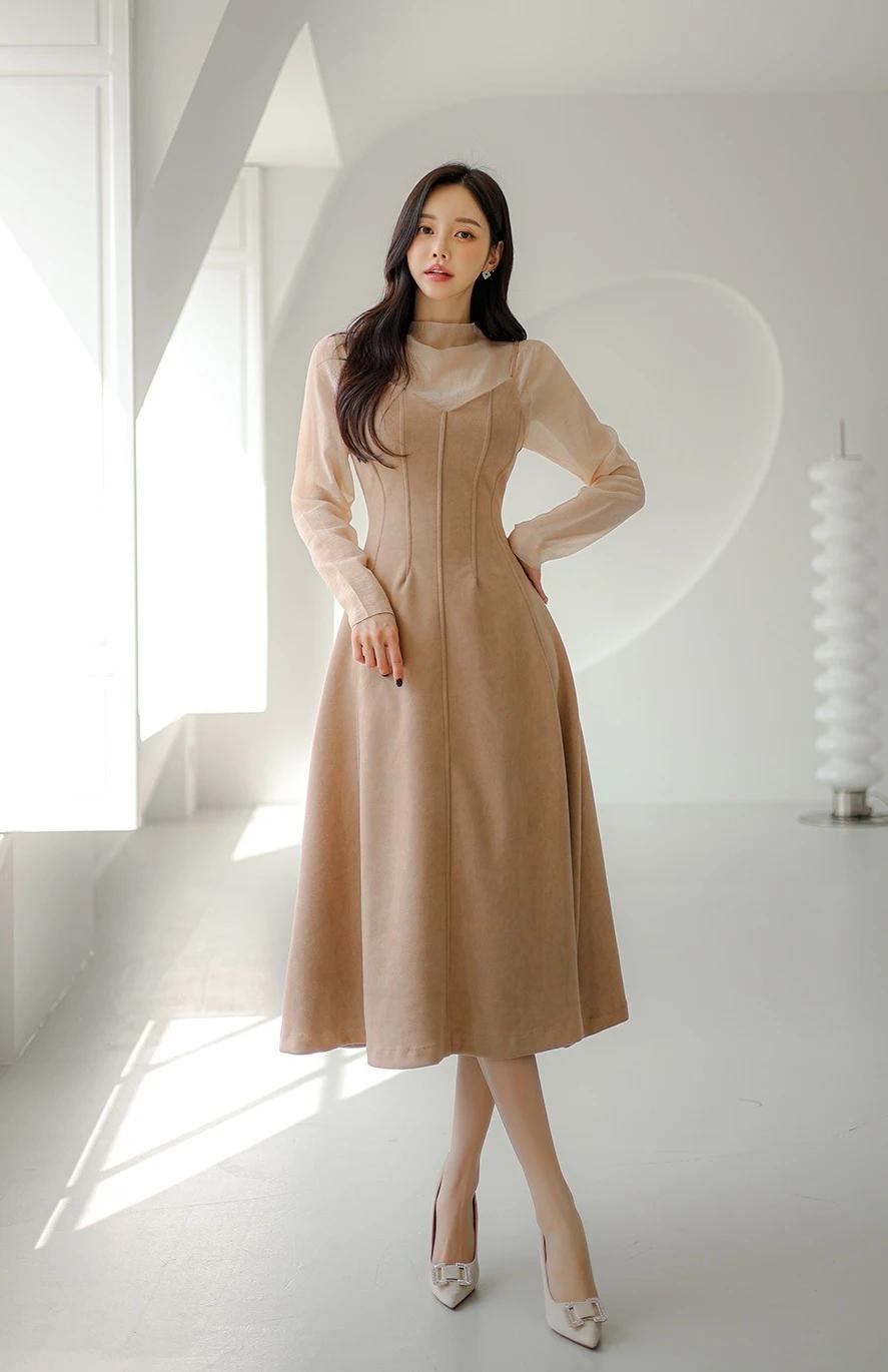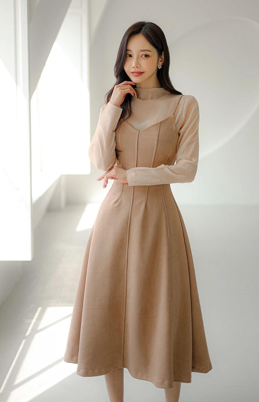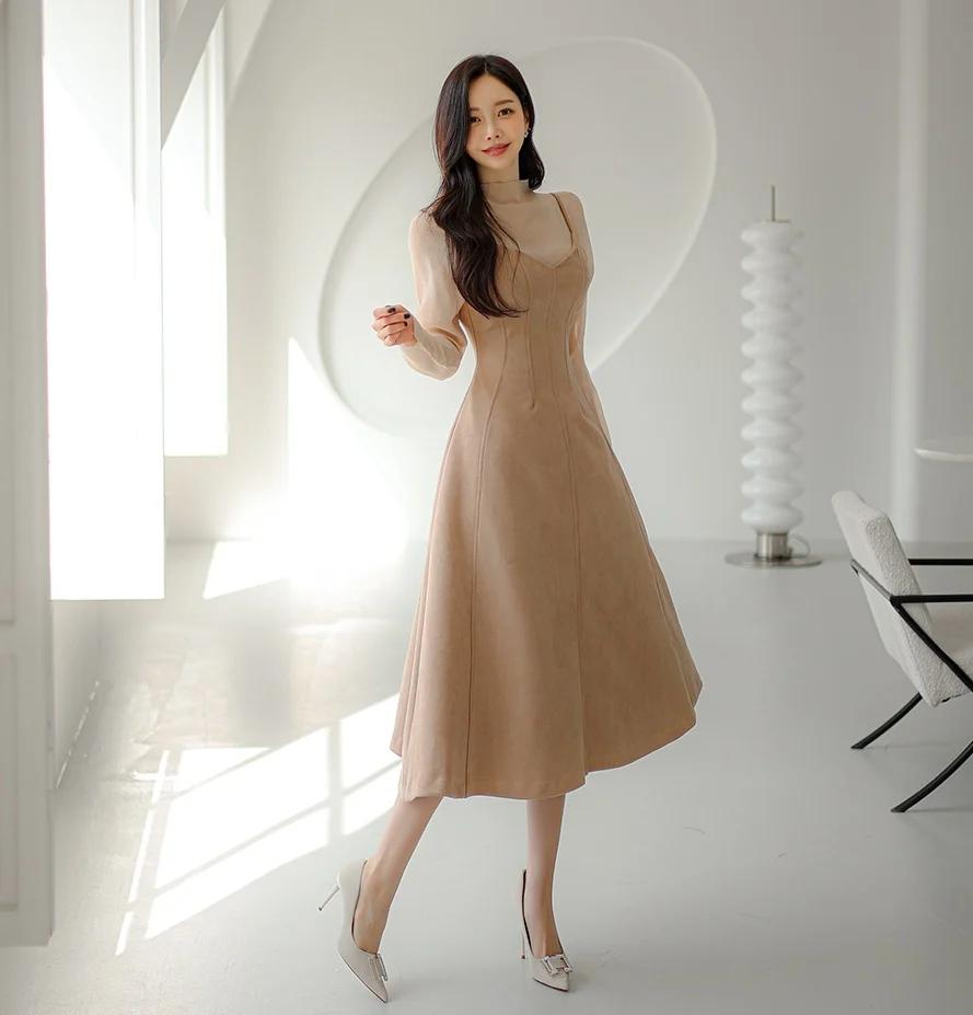 孙允珠-穿着一条米色长裙,优雅动人。每日搭配分享·时尚穿搭 今天你记录穿搭了吗?