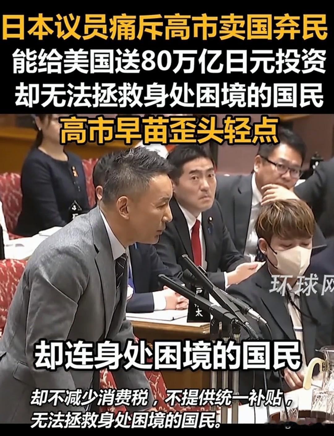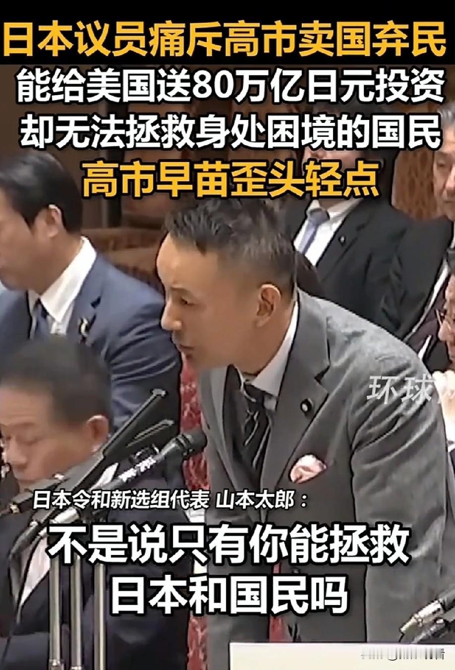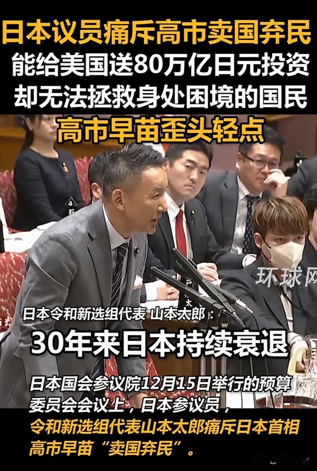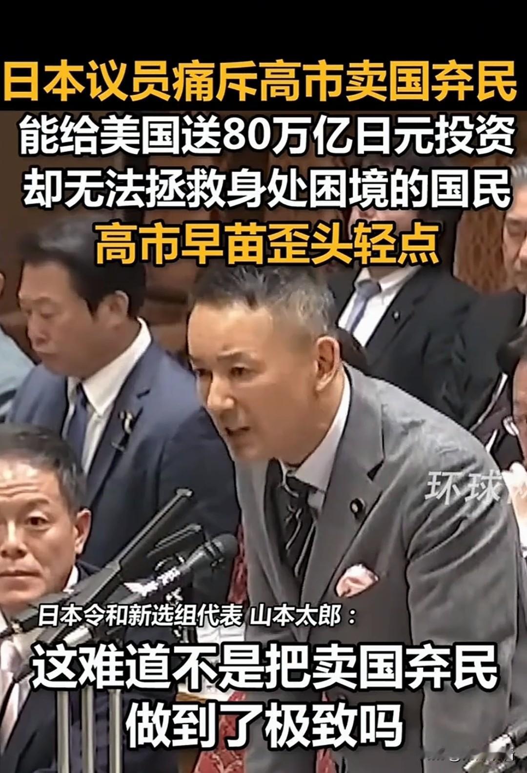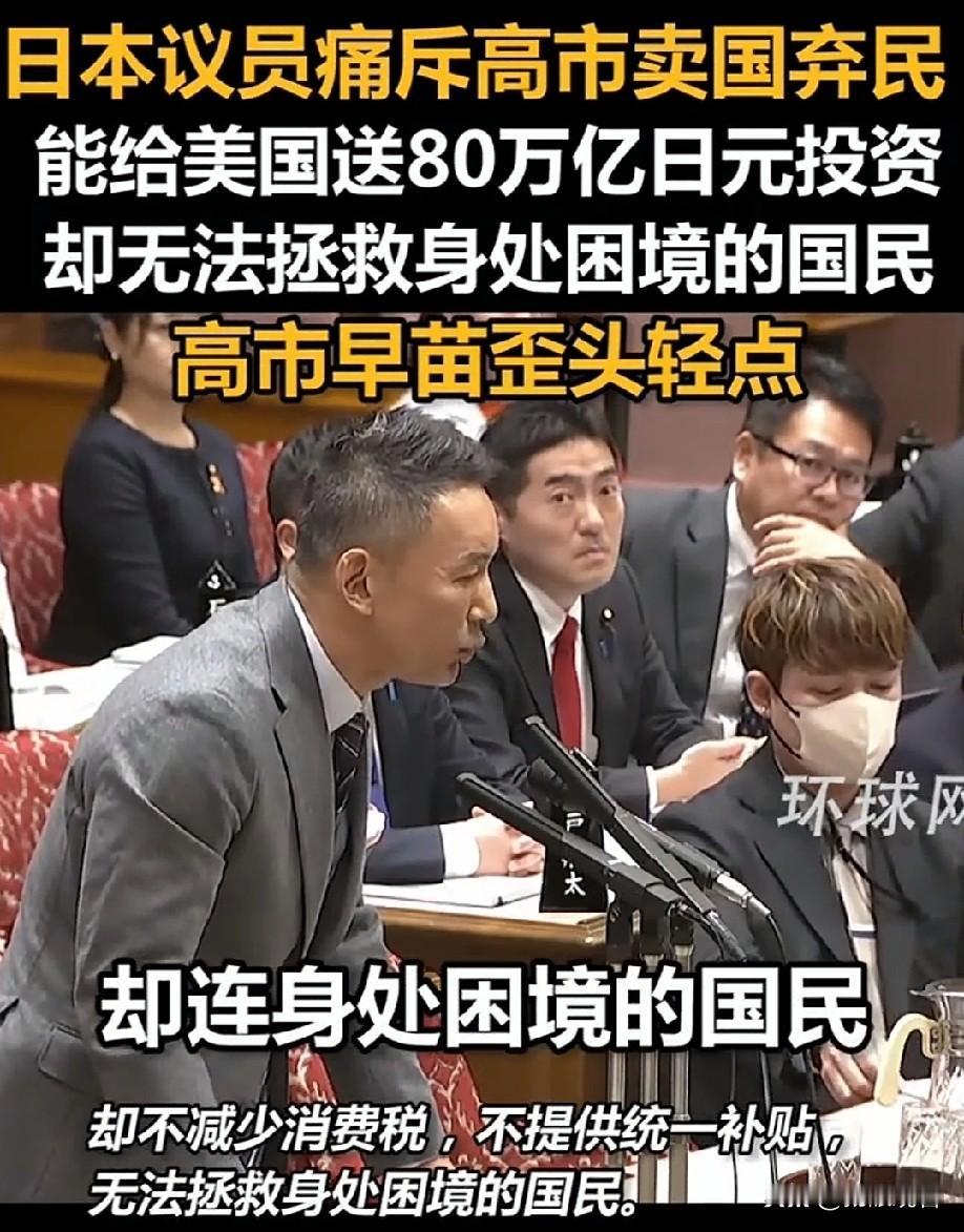 炸裂!高市早苗国会遭怒怼卖国弃民🔥场面失控三次消声! 日本政坛彻底炸锅了‼️ 参议院预算委员会现场直接开撕,令和新选组代表山本太郎怒怼首相高市早苗,一句“极致的卖国弃民”戳穿真面目,骂得她哑口无言,国会直播三度消声,民众街头抗议喊“高市下台”,这波真的大快人心👏 ❌ 「弃民实锤」:80万亿喂美国,百姓死活不管! 高市操作简直离谱到刷新认知👇 豪掷80万亿日元(约3.6万亿人民币)对美投资,结果90%利润全归美国,日本得等美国赚够160万亿才能回本,这不就是变相给美国交保护费嘛😤 反观国内,物价飞涨、民生崩溃,普通人日子都快过不下去了,呼吁废除消费税或全民补贴,她却直言“短期内不搞全民补助”,有钱讨好美国,没钱贴补百姓,这波操作真的寒了日本民众的心🇯🇵 上千日本民众冒着寒风围堵首相官邸,举牌喊“高市辞职”,怒批她不顾民众死活,弃民实锤锤到不能再锤‼️ ❌ 「卖国铁证」:插手台海红线,把日本往火坑里推! 更恶心的是她触碰中国底线的操作,彻底坐实卖国本质👇 ✅ 公然宣称“台海武力冲突=日本存亡危机”,明着暗示“台湾有事就是日本有事”,想军事介入台海,直接违背《中日联合声明》,突破历届政府底线; ✅ 偷偷窜台勾结“台独”,鼓吹“日台安全合作”,上台后还重用大批亲台政客,两面三刀搞小动作; ✅ 内阁原本准备好“不回应假设性问题”的答辩稿,结果她非要自己发挥乱说话,心虚到被质询时全程回避,连防卫大臣想帮腔都被怼回去,国会当场炸锅三次消声,狼狈到极点⚠️ 前首相鸠山由纪夫都看不下去,直言“台湾是中国内政,日本不该插手”,她却执迷不悟,把日本推向战争边缘! 🔥 右翼本性藏不住!军国主义余毒彻底暴露 高市早苗的坏从来不是一时兴起,骨子里全是右翼激进底色👇 ▪️ 频繁参拜靖国神社,否认南京大屠杀,还为美化希特勒的书作序,公然给军国主义招魂; ▪️ 疯狂扩军备战,提前实现防卫费占GDP 2%目标,想废除和平宪法、放宽武器出口,甚至暗示研发核动力潜艇,穷兵黩武没底线; ▪️ 内阁成员全是问题咖,外相用政治资金买奢侈品、财务大臣漏报收入,她还嘴硬说“收支透明”,内政一团糟还忙着搞挑衅,真的烂到根里了! 💥 恶果已现!遭反噬纯属自食其果 她的作死操作早就让日本付出代价👇 中方直接反制,暂停日本水产品进口、发旅游留学预警,相关损失高达2.2万亿日元,经济民生双重受挫; 国内抗议声浪越来越高,在野党集体炮轰,前首相野田佳彦痛批她“言论轻率,把日中关系拖入绝境”,国际社会也警惕日本军国主义复活,彻底成了过街老鼠人人喊打🙅‍♀️ 讨好美国卖国家,无视民生害百姓,还敢触碰中国红线,高市早苗的“卖国弃民”标签,真的是自己作出来的!任何违背历史潮流、触碰底线的作死行为,终将自食恶果,正义从来不会缺席✅