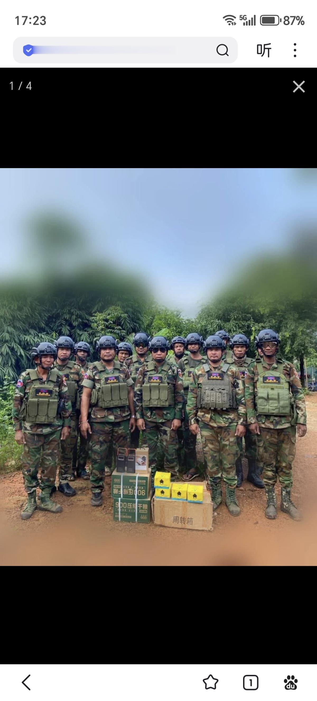柬埔寨方面发布了照片,显示其获得了中国制的军用物资,包括移动电源(充电宝)、手电筒以及供部队使用的高能量压缩饼干。