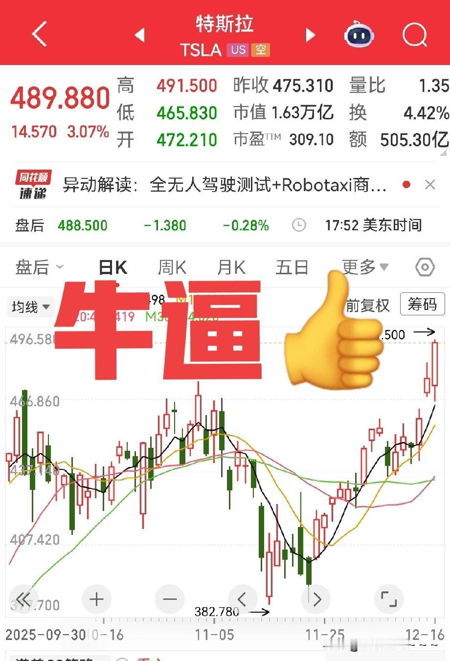 一大早,看了看美股,收盘了,纳斯达克微红,科技股略有反弹,直接说A股今天的重点: 在我看来,A股今天重点还是要放在跟特斯拉有关的股票上,因为特斯拉股价马上就要突破历史新高了,昨天晚上大涨百分之三左右。 特斯拉涨,在美股上市的中概股无人驾驶公司,比如说文行致远,小马智行都跟着大涨了。 大家都知道昨天无人驾驶第1天上涨,直接来了一个高开,今天估计应该还有戏。也许就是接下来一个大热点! 其二,当然了,消费端也不容易忽视,因为各级发话都在发力明年的大消费。 其三,科技股如果反弹,首选光刻胶,该板块最近走的比较强势,趋势还在,好多个股已经三连阳,不管今天调不调整,接下来可期,操作上逢低介入。。