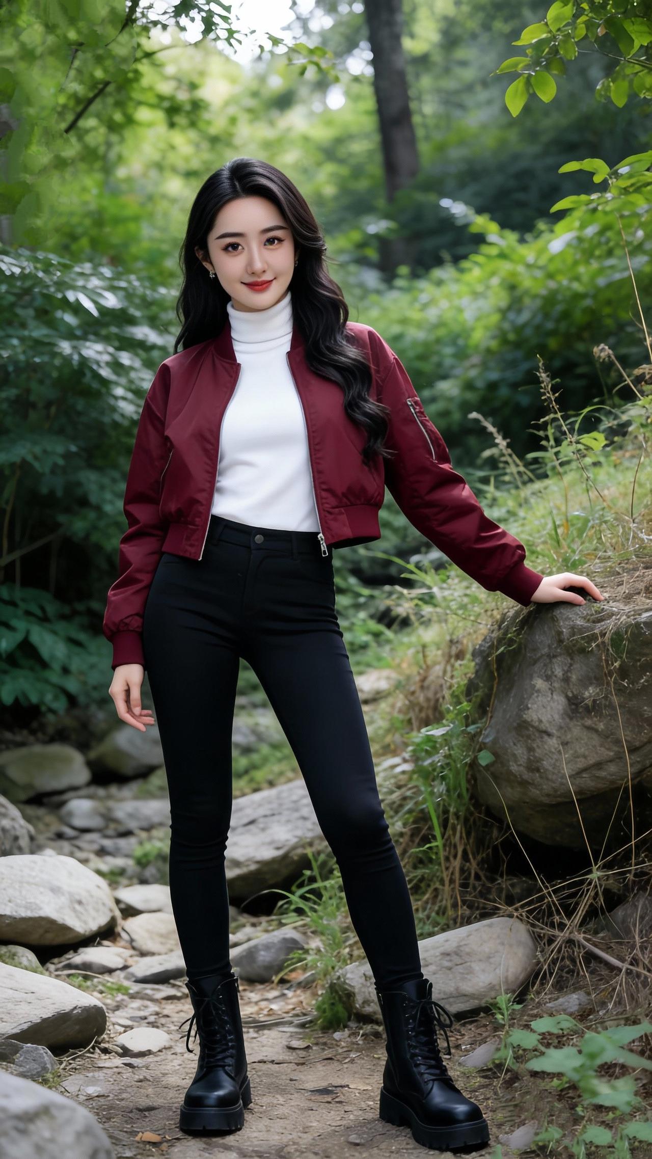 《林涧红影》 作者:草原雄鹰 翠壑藏幽径,苍林覆绿纱。 红襟裁晓色,素领映烟霞。 笑倚青石畔,风梳墨发斜。 一身飒爽气,摇曳胜桃花。 赏析:这首五言诗以林间溪涧为背景,刻画了女子飒爽灵动的形象。首联以“翠壑”“苍林”铺展清幽的自然环境,“藏”“覆”二字勾勒出山林的静谧;颔联将红夹克与白高领的色彩对比写得鲜明,“裁晓色”“映烟霞”赋予衣饰鲜活的画面感,让人物在绿意中格外亮眼;颈联捕捉女子倚石、发丝被风拂动的细节,动态的画面增添了生动感;尾联点出“飒爽气”的核心气质,以“摇曳胜桃花”作比,既突出了女子的明艳,又与山林的清新形成呼应。全诗以景衬人,从环境到形姿再到气质,层层递进,将现代穿搭的飒爽与自然的清幽融合得恰到好处。似林间晨露轻洒 千峰翠竹幽 踏风落幽径 七律·寒林落日 秋林觅句图 秋鸟首诗
