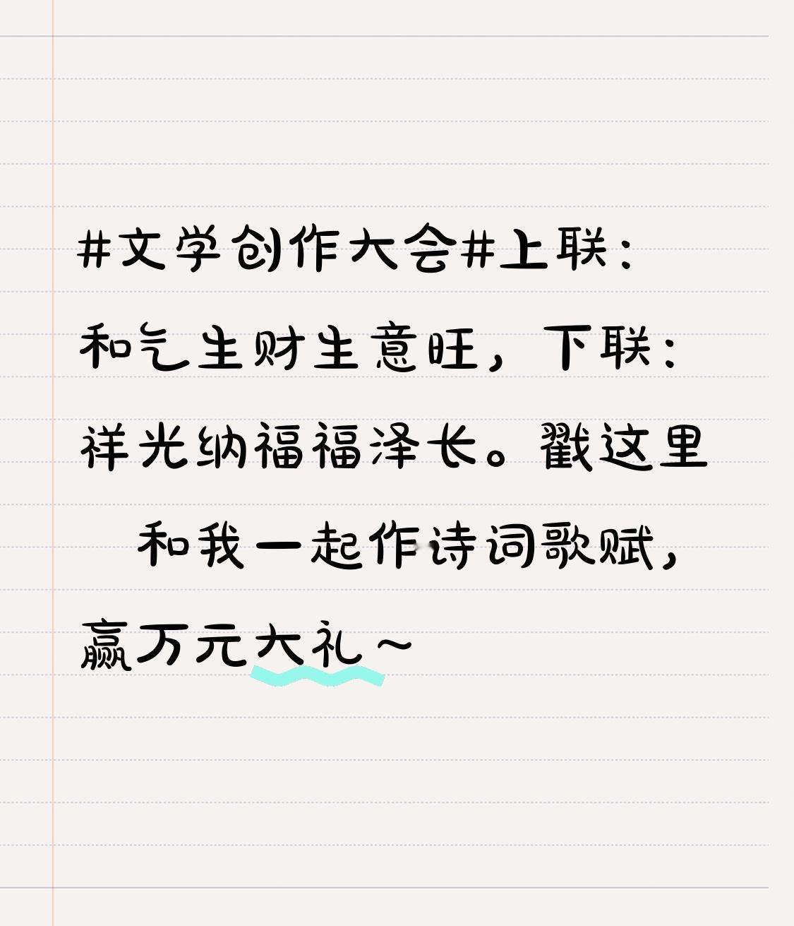 文学创作大会 这上联“和气生财生意旺”,下联“祥光纳福福泽长”对仗工整,寓意超棒,一看就是能带来好运的好对子! 文学创作大会这活动太妙了,既能让人感受诗词歌赋的魅力,还能赢万元大礼。就像李隆基《经鲁祭孔子而叹之》,短短几句诗,就把对孔子的感叹表达得淋漓尽致。还有那些每日一联,五字联、六字联,简单却韵味十足。咱要是也在这创作大会里大展身手,说不定也能写出流传的好对子,拿大奖那更是美滋滋!赶紧戳进去一起创作吧!