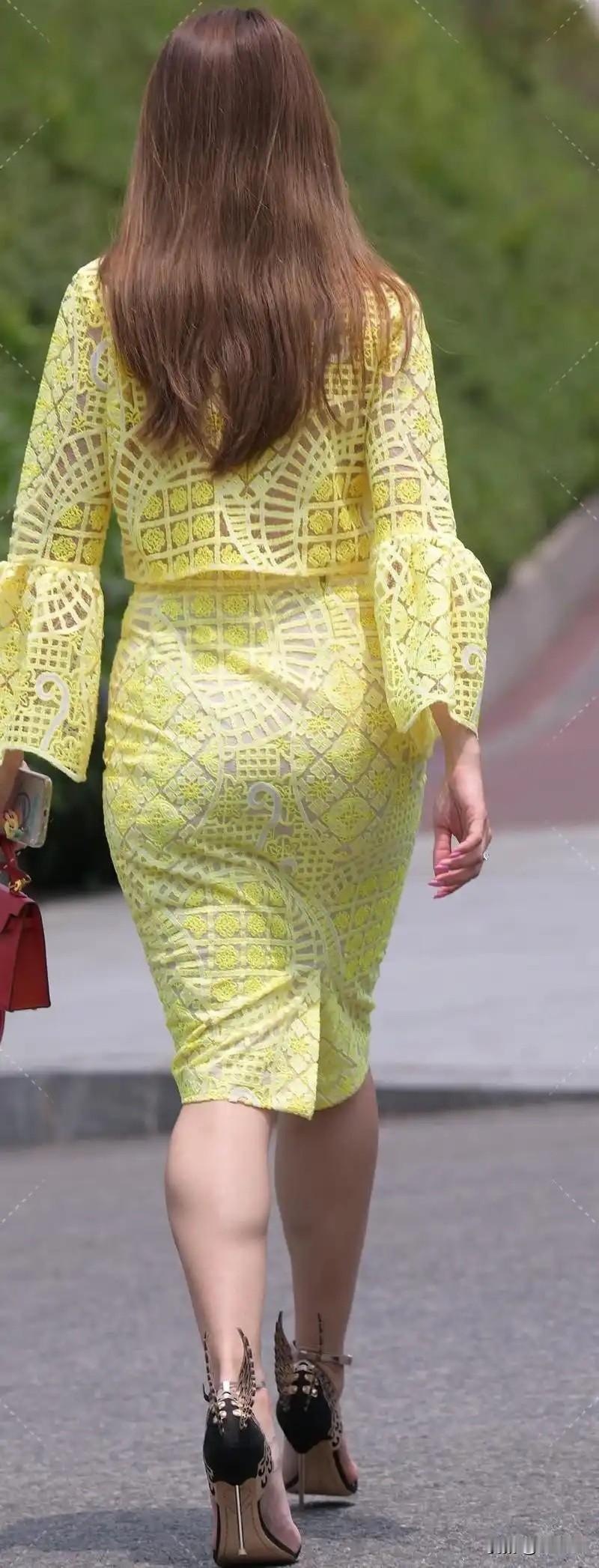 夏日穿搭指南:亮黄色蕾丝连衣裙,搭配高跟鞋,尽显优雅与时尚!