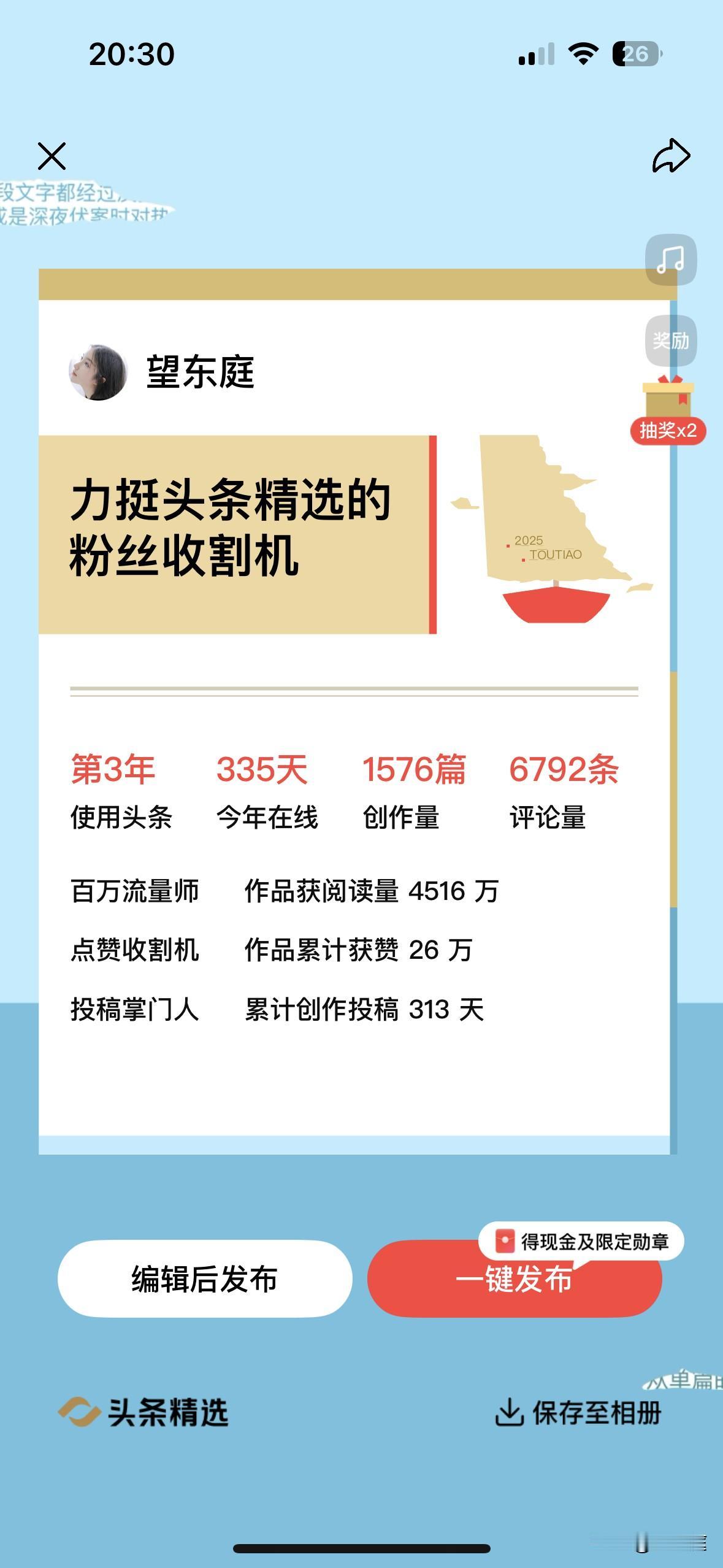 今年是我写头条的第三年,不知不觉2025年总收益居然超过了10万!不瞒大家说,作为一名没有工作的家庭主妇,我来头条的初衷就是为了赚钱。 接下来,跟所有粉丝朋友们分享一下一路走过来的心路过程吧! 初来乍到之时,由于没有经验,在更新这方面几乎是三天打鱼两天晒网。所以,第一年全年收益才几千元。 后来,关注了好些个同我差不多情况的全职妈妈,大家都在努力的码字。于是,从2024年起开始奋进。 起初,给自己立下的目标是每个月只要挣个千把块的水果钱就行。没想到,后来的数据还不错,基本上都超过了目标。 原本一个双手朝上的人,不用再找家里拿一分钱,靠着自己就可以覆盖个人及全家的生活费用。 这种变化让我得到了心灵上的满足,就这样,慢慢的越写越沉迷! 今年我一共写了1500多个头条,得益于运气,上半年的收益比较可观,最多的一个月达到了2万多!最近几个月收益大幅下降,但每个月仍多多少少有点。 毕竟,在大家都比较艰难的时刻,一分也是爱,该知足了。 写头条这么久,我从来没有买过所谓的课程,在此,也不建议大家花钱去学习。多读别人的优质作品、多思考、多写、多看,就会越来越顺手。 其中,不要忘记最重要的一点:要持有良好的心态!努力不一定会有结果,但不努力绝对没有结果。所以,坚持和勤奋,永远是王道。很多时候要看长期,而非眼前的结果! 以上是我的个人看法,欢迎大家有时间多多交流。