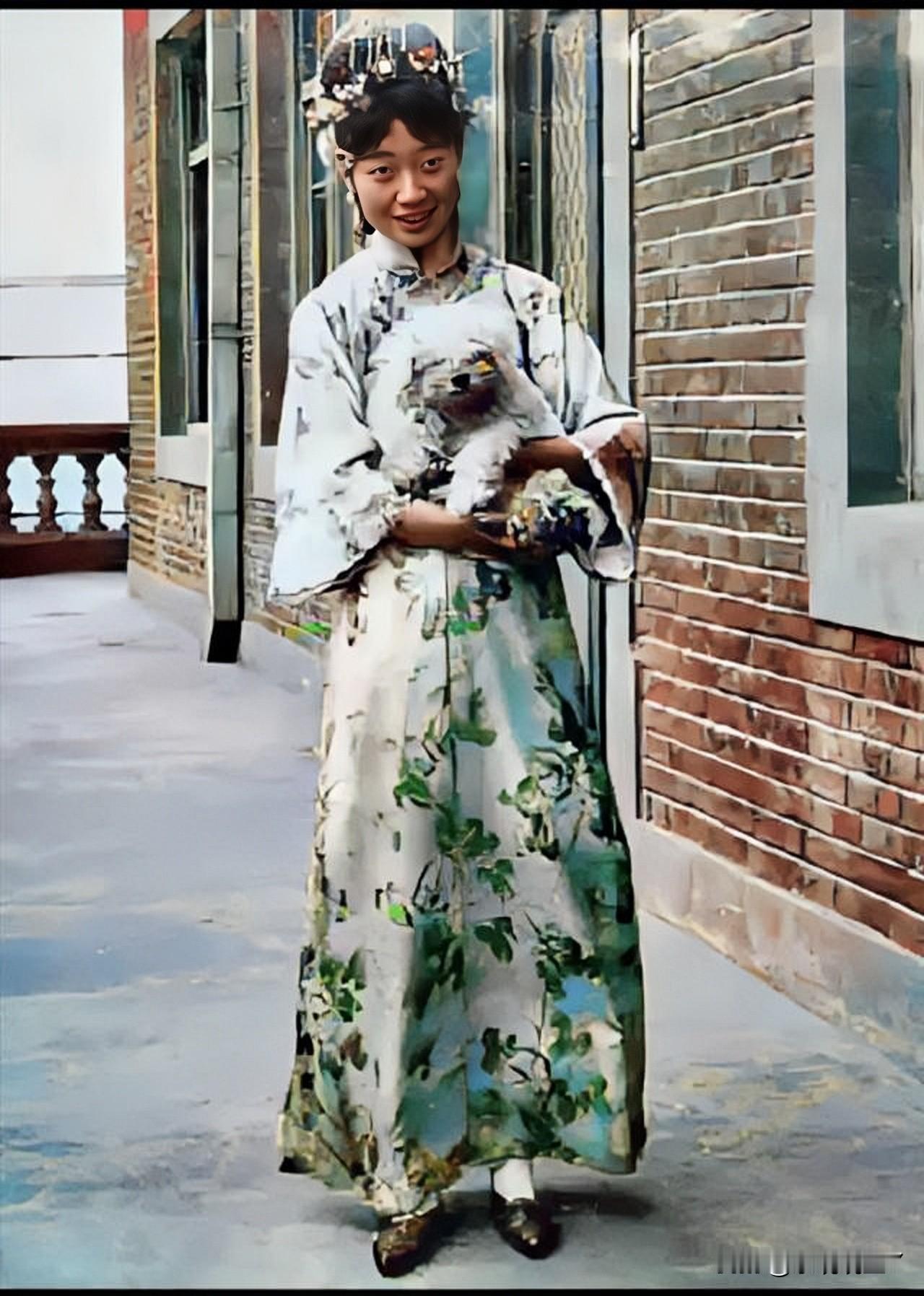 这便是婉容年轻时的真实模样,这而非演戏,也绝不是影视剧里的演员,确是货真价实的本人,外貌呈现的十分清晰,一望而知!这一九二五年婉容抱着她的小宠物在天津的一张珍贵留影。彼时婉容十九岁,都说婉容年轻时是个容貌出众的美人,漂亮得倾国倾城,放到而今大家还觉得她美么?