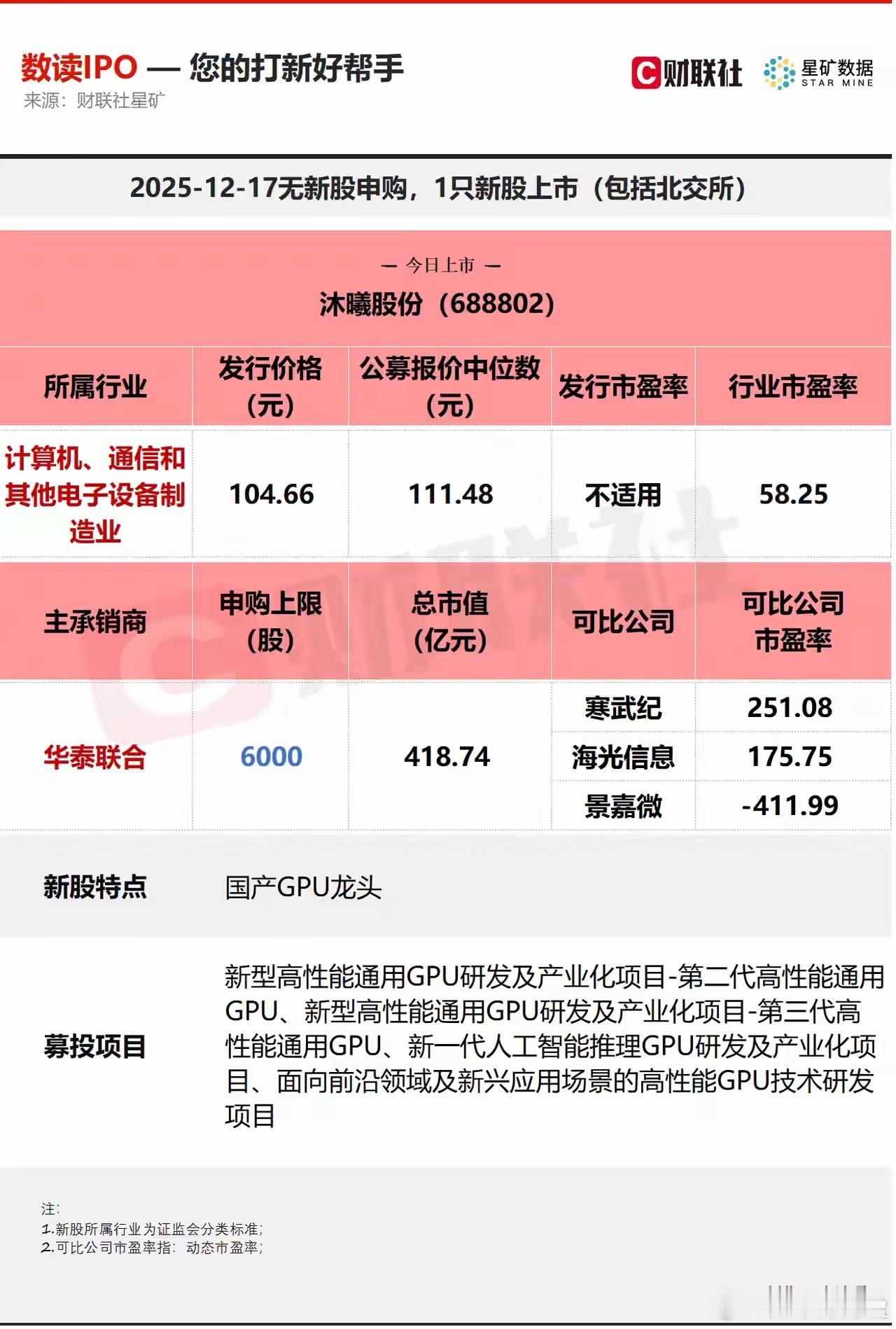 好家伙,中签就能换车了!12月17日,国产GPU第二股沐曦股份就要登陆科创板啦。这可是国内高性能通用GPU领域领军企业,申购热度超摩尔线程,网上发行最终中签率为0.03348913%。