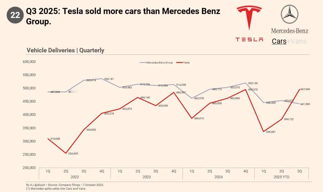 Model Y/3包揽国内近一年最畅销的两款豪华车,特斯拉成为三季度国内高端品牌销冠据易车榜最新统计数据,在国内豪华车市场,特斯拉Model Y与Model 3包揽近一年销量冠亚军,远超众多传统燃油车。其中,Model Y的销量达到同级传统豪华品牌燃油车的3.2倍之多。在刚刚过去的第三季度,特斯拉凭借超15万辆的终端销量成绩,超越奔驰、宝马、奥迪,稳居国内车市最畅销的高端品牌。在国内媒体统计的历年销量排名中,特斯拉自2020年起成为高端品牌热销前十名中唯一一个电动车品牌,此后保持稳定热销态势并于2025年实现超越。在全球车市,特斯拉都展现出远超传统燃油车的产品实力。据外媒报道,今年第三季度,特斯拉全球交付量达到49.7万辆,创下历史新高。这不仅刷新了其单季度交付纪录,也首次实现同期销量超越奔驰集团,仅用不到20年便实现了对百年豪华品牌的销量反超。实打实的销量成绩背后,特斯拉正吸引越来越多车主选择“油转电”,车主小红薯627903F2在社交平台的分享就颇具代表性。他将开了三年的宝马换成Model Y后,感叹特斯拉空间宽敞、实用性远超预期,不仅用车成本极低,操控性能更加出色,在辅助驾驶的加持下出行省心又安全,是他心目中完美的家庭用车。特斯拉汽车销量欢乐购车季