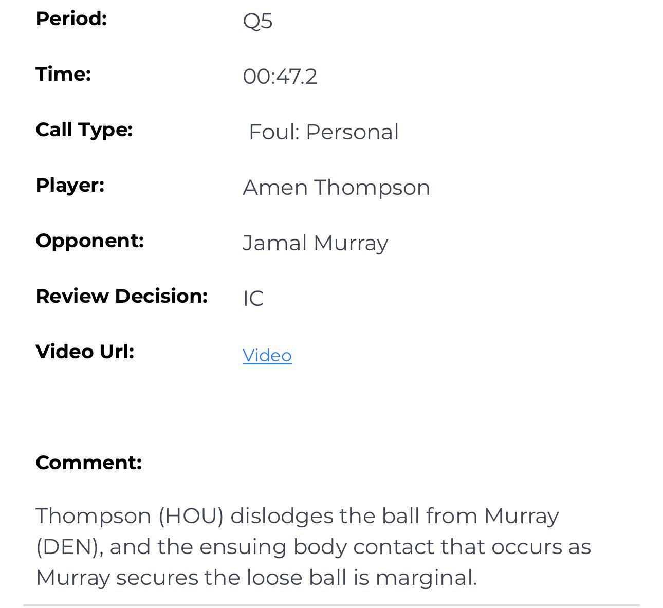最后2min裁判报告显示昨天掘金和火箭最后出现3次错漏判,都是掘金有利。申京抢篮板被推那个显然是漏判,另外阿门推穆雷那个软哨,裁判报告认定是轻微接触,不该吹。另外阿门对小哈达威发球前的犯规被确认没有问题,带到脚是犯规。NBA