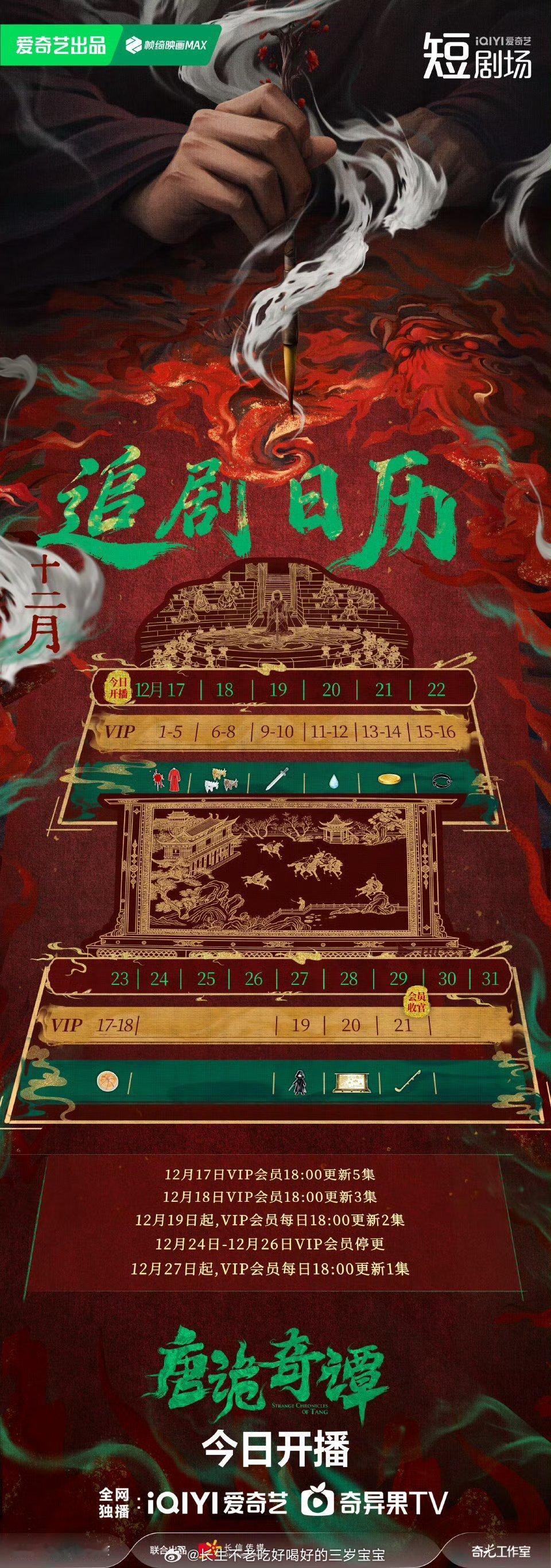 唐诡奇谭开播连追剧日历都做得这么有质感,剧组的用心感受到了!已经分享给一起追剧的小伙伴了,唐诡小分队,今晚18点爱奇艺,我们准备好跟你们破案了!
