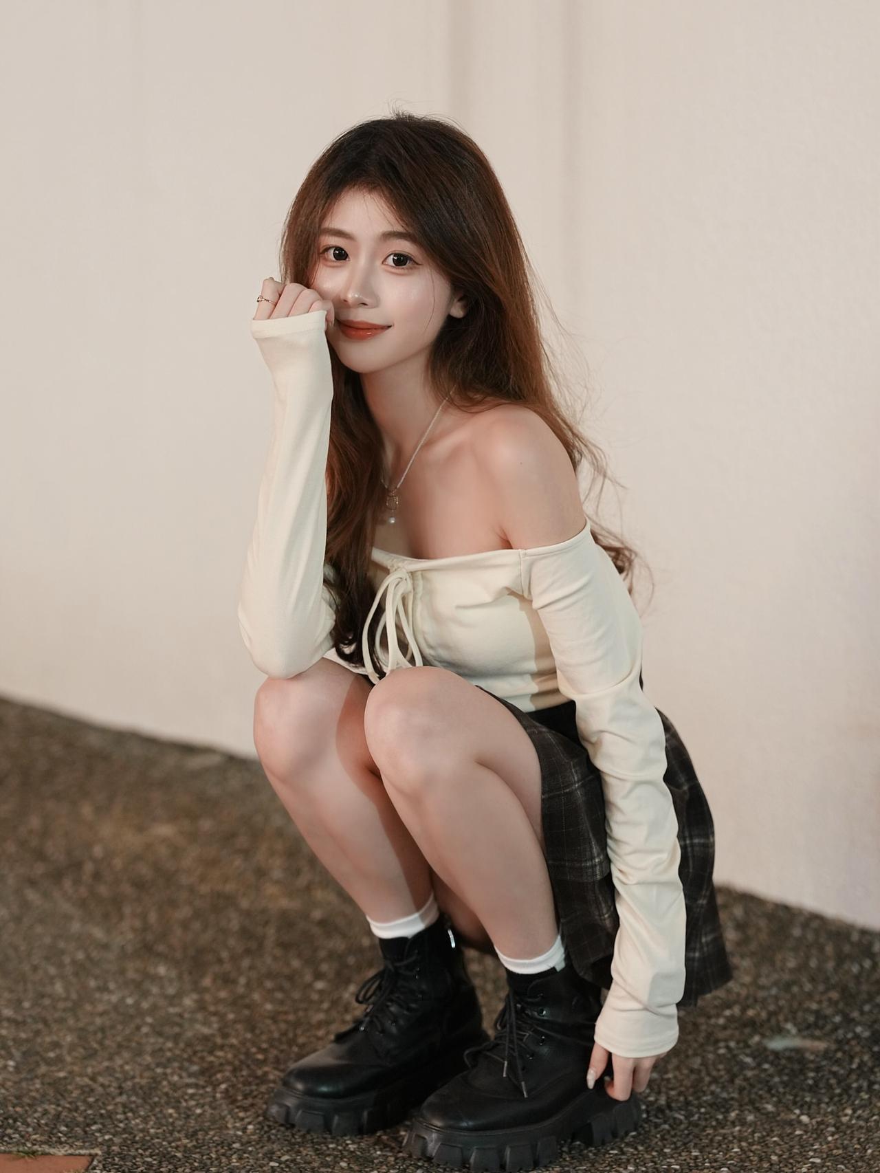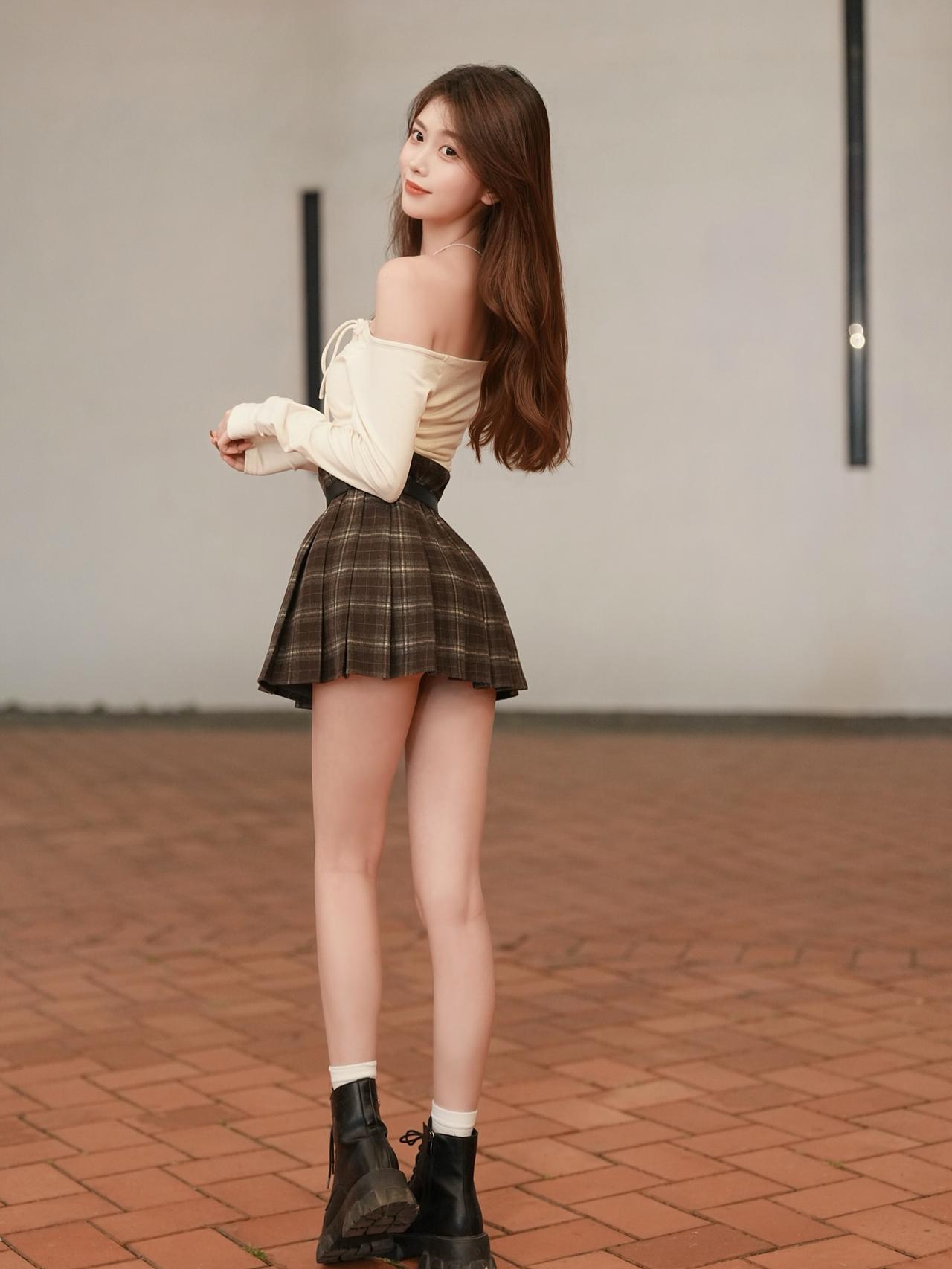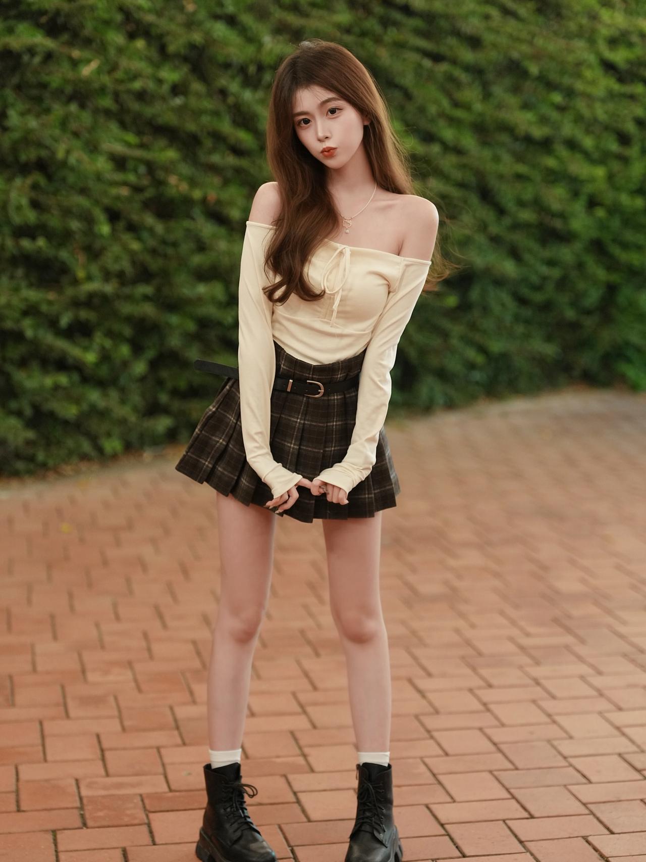 甜美少女风,格子裙搭配米色上衣,清新自然,元气满满!🌸💕米色时尚连衣裙 优雅自信穿搭分享
