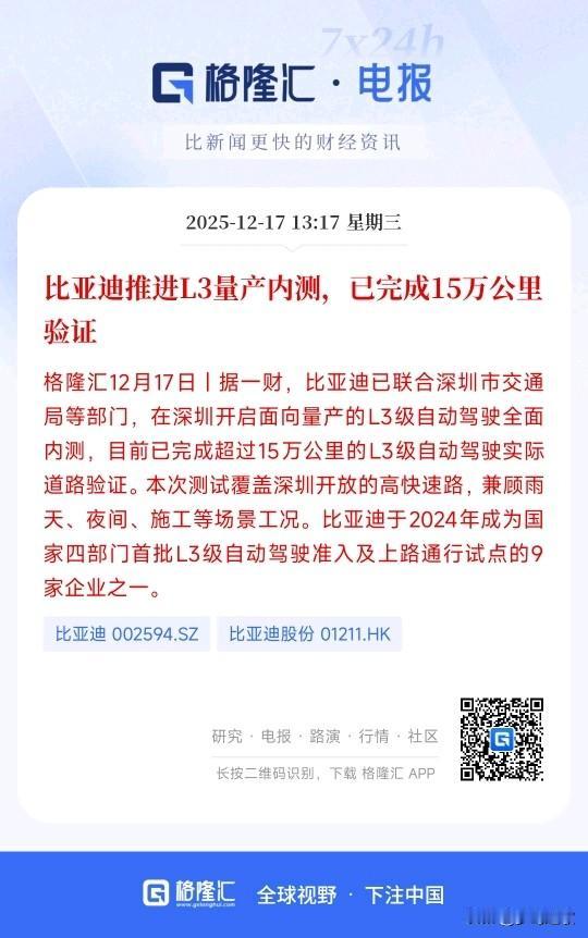 比亚迪也加入了L3辅助驾驶的大军,L3将成为汽车新方向 对于国内汽车行业来说,智能辅助驾驶已经很成熟了,已经有很多平台推出了出租服务,而L3的出现再次刷新了人们的认知,相比以前的智驾更加安全可靠,技术落地也低,成本可控。 比亚迪的加入标志着新一轮的技术革命开始了,也告诉大众L3将会进入人们的视野。 资本市场也在争夺L3的话语权,现在比较成熟的就是长安汽车,极狐汽车,奔驰和小鹏。未来对L3市场的争夺将是一个大趋势。