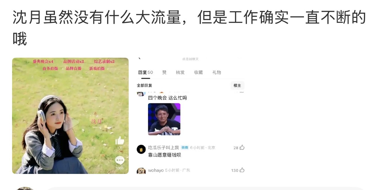 拿着今年十二月行程图给沈月翻岁月史书,只能说明你担又懒、又臭脸、没情商、没能力、还没演技、综艺也没效果。要我说芒果专栏怎么偏你来时就逢春,赶上衍生B级节目播出A+综艺效果,赶上b站纯手搓200万大up主,赶上拥有自己的广告池,别家想要却不可求的技能梦呢。你命太好。今天是谁在不停下这种稿啊,感觉像狗在摇尾巴求怜爱,接你担去签功夫真言,但忘了告诉你那里并没有你心心念念的陈国富