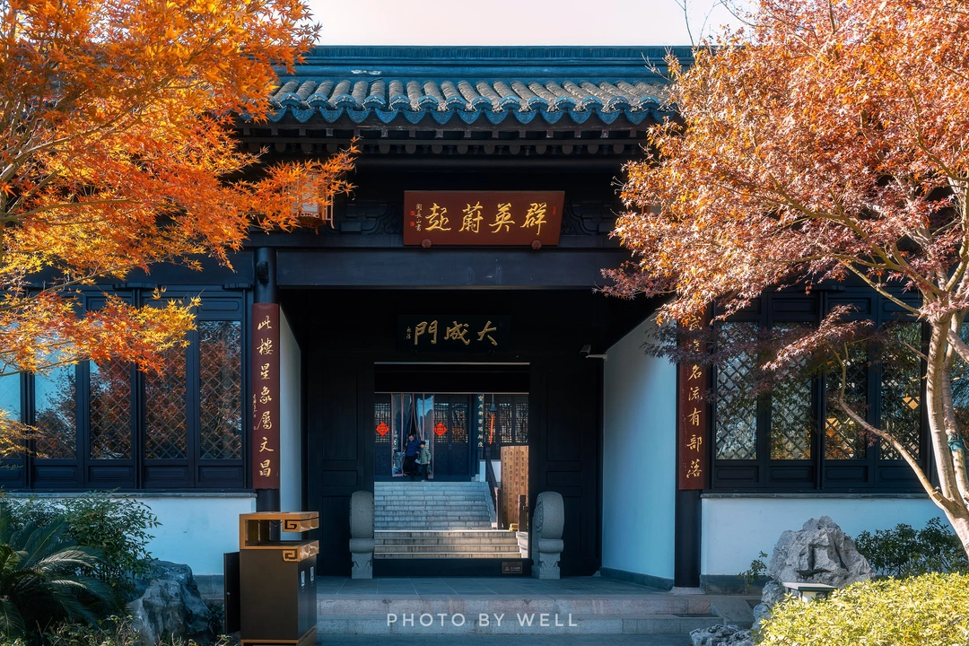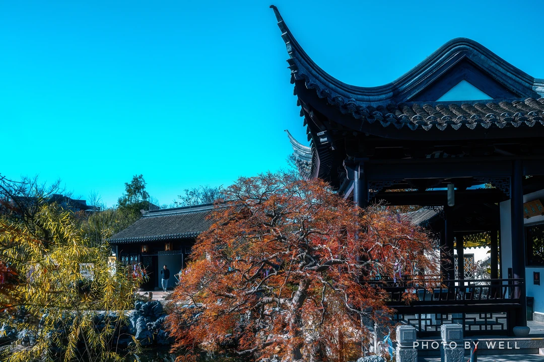 无锡园的“寄畅攀香” 以太湖石和水景见长,水池边点缀着桂花和红枫。秋风送爽时,桂香弥漫,沁人心脾。常州园的“魁星以意” 依山而建,魁星阁矗立高处,四周枫香、槭树环绕。