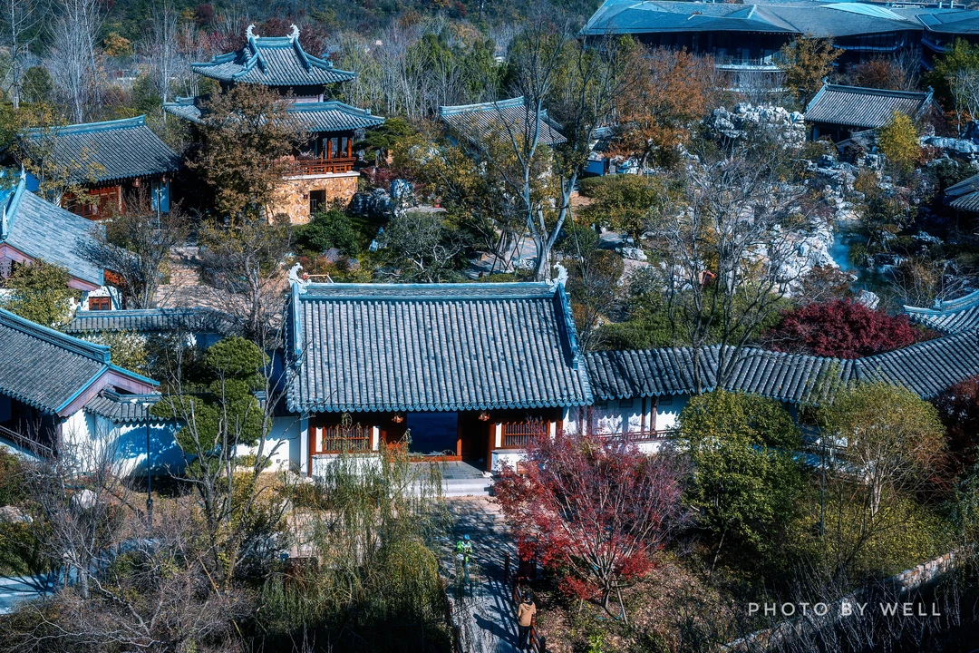 苏韵十三园的建筑布局依山就势,与秋季植物的色彩变化形成了巧妙呼应。