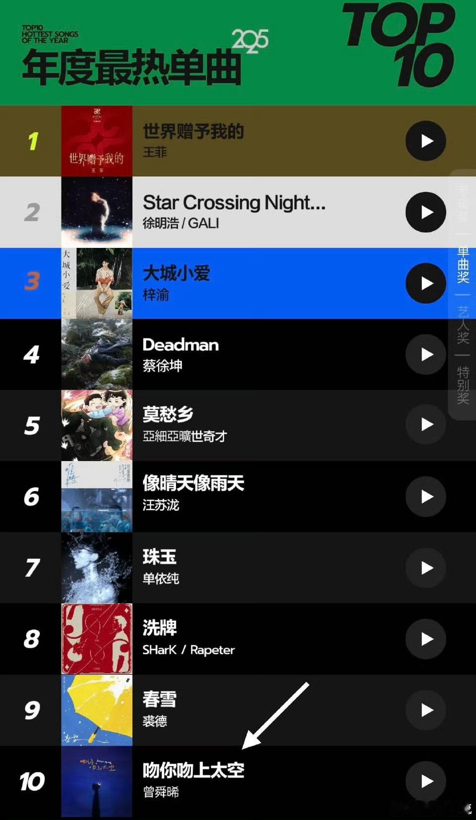 曾舜晞一不小心唱到榜单了谁能不爱全方位才子!2024年《Dehors》以Dream Pop曲风惊艳乐坛,2025年《吻你吻上太空》续写热榜传奇,双语演绎+高质审美圈粉无数。演员跨界音乐还能稳定输出爆款,这实力真的无可挑剔!