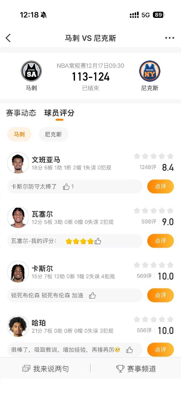 尼克斯124-113战胜马刺,夺得NBA杯冠军!阿奴诺比28分9篮板3助攻,布伦森 25分4篮板8助攻,唐斯16分11篮板。马刺方面,文班亚马18分,福克斯16分。