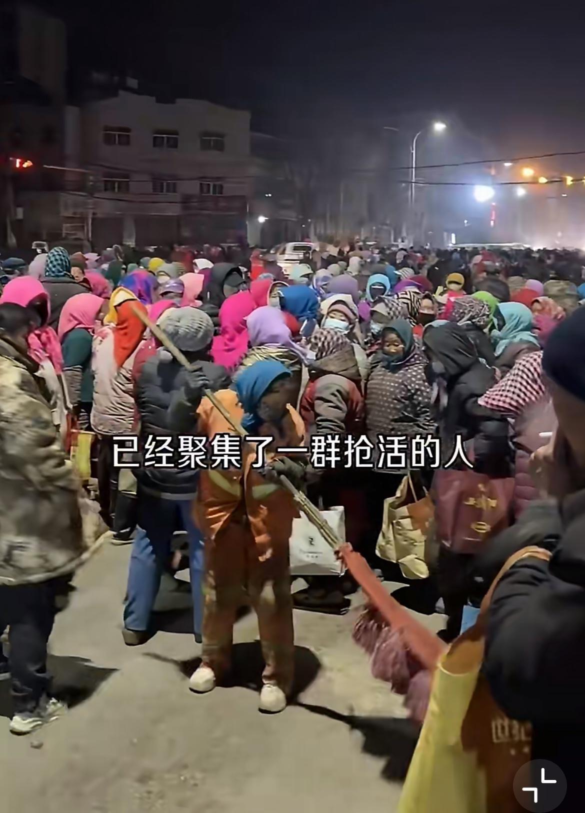 一网友拍摄的甘肃定西首阳镇凌晨4点的散工市场,零下10度,一群五六十岁的大爷大妈已经早早在这里等候抢活干。有一些是附近居住的人,有一些是半夜就起床从附近乡镇赶过来的,就为在这个零工市场找到一个活干,工价已经从150每天压缩到110,就这还没得挑,主要是挖药材和晾晒药材。如果今天没找到活,那就只能等明天,吃自己随身带的干粮。零工市场