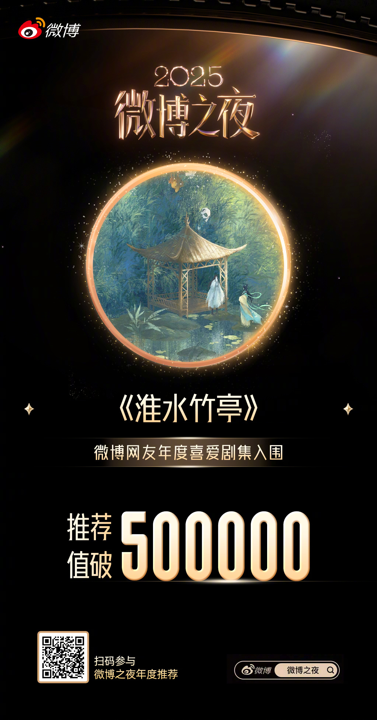 🏆微博之夜年度推荐 荣耀里程碑恭喜刘诗诗淮水竹亭年度喜爱剧集推荐值破50万