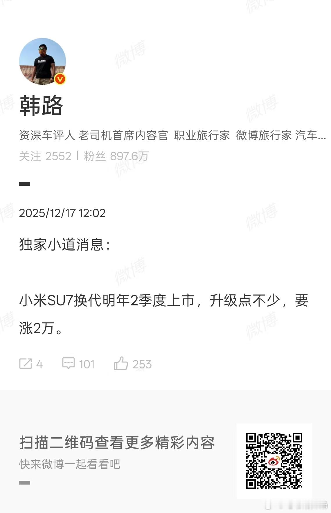 这可能是我今年听到过最不靠谱的小道消息!要么增配不涨价,要么增配也降价!不是针对