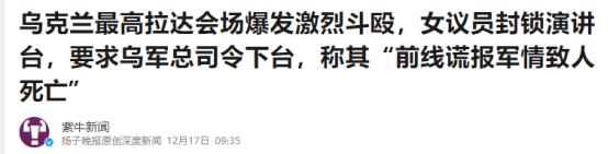 乌克兰最高拉达会场爆发激烈斗殴,女议员封锁演讲台,要求乌军总司令下台。   乌克兰的最高拉达,也就是他们的议会,又把“打架”这事儿干上了新闻头条。不是吵得面红耳赤那么简单,是真刀真枪的推搡斗殴,桌椅都被撞得挪了位,现场乱得像菜市场,连海客新闻都援引今日俄罗斯的报道,把这出闹剧给曝光了。   闹得最凶的是个女议员,叫玛丽亚娜·别祖格拉娅,直接一屁股占了演讲台,挂着大标语跟同僚们硬刚,核心就一句话:乌军总司令必须下台,他在前线谎报军情,害死了太多士兵。   这事发生在12月中旬的议会会议前,按说议员们该正儿八经准备议事,别祖格拉娅却提前带着几条白底黑字的标语进了会场。她踩着高跟鞋噔噔噔冲上演讲台,把标语往台边一挂,乌军总司令必须下台前线谎报军情致人死亡这两行字特别扎眼,瞬间就把整个会场的气氛给点燃了。   可能有人会觉得,这女议员是不是在作秀?还真不是。了解一下别祖格拉娅的背景就知道,她不是那种只会喊口号的政客。   她嘴里说的“谎报军情致人死亡”,也不是空穴来风。俄乌冲突打了这么多年,乌克兰军队的伤亡数字一直是敏感话题,但俄防长绍伊古曾公开过一组数据,说自特别军事行动开始,乌军伤亡已经超过38万人,光是2023年6月那次大反攻,就死伤了15.9万人,损失的坦克装甲车更是数以千计。   这些数字乌克兰官方没正面回应,但前线士兵的家属们心里有本账。别祖格拉娅在议会里不止一次提过,很多士兵牺牲不是因为装备差,而是因为指挥层给的情报不准,明明对面有俄军重火力布防,却被说成“防御薄弱”,硬逼着士兵冲锋,这跟送命没区别。   她矛头直指的乌军总司令,就是曾经被称为“钢铁将军”的扎卢日内。这位将军早年也是从排长一步步干上来的,2022年俄乌冲突爆发后,因为指挥乌军挡住了俄军进攻基辅,民望一度飙升到88%,比总统泽连斯基的支持率还高。   但转折点出在2023年的大反攻,泽连斯基把这次反攻当成向西方要援助的筹码,喊着要“兵临克里米亚”,可扎卢日内指挥的部队却进展缓慢。   别祖格拉娅的逼宫,其实也是乌克兰军政矛盾的集中爆发。作为泽连斯基所在的“人民公仆党”成员,她的举动多少带着点党内立场,但更多的是对前线牺牲的痛心。   她在斗殴被拉开后,对着话筒喊的那句话特别戳人:“我们不是在争权力,是在为那些没法开口的士兵讨公道!他们的妈妈问我‘孩子怎么死的’,我不能说‘因为指挥官给错了情报’吗?”   这番话传到网上,乌克兰网民瞬间分成了两派,支持她的人说“终于有人敢说真话了”,反对的人则觉得“战时搞内斗,就是给敌人递刀子”,还有老兵家属在议会外举着亲人照片抗议,要求彻查前线指挥问题。   乌克兰议会打架早就不是新鲜事了。2019年12月,就有议员因为土地改革法案打起来,有人被打得脑震荡送进医院;2025年9月,农业政策委员会开会时,自由党和人民公仆党的议员又因为土地出售问题扭打成一团。   但这次不一样,以前是为政策争,这次是为生命争,性质完全不同。别祖格拉娅事后接受采访时说,她知道封锁演讲台会被骂“极端”,但“如果安静地开会就能解决问题,那些士兵就不会白死了”。   她还透露,已经收集了不少前线情报失误的证据,会提交给国家安全委员会,就算不能马上罢免扎卢日内,也要让指挥层给公众一个交代。 这场斗殴背后,其实是乌克兰更深层的危机。   西方的援助越来越谨慎,美国国会多次搁置对乌援助法案,欧洲的弹药供应也跟不上,前线士兵缺枪少弹,后方却在为情报问题吵翻天。泽连斯基政府一边要稳住西方,一边要安抚民心,还要平衡军方的权力,早已焦头烂额。   扎卢日内的处境也很微妙,他后来在2024年2月被解职,虽然泽连斯基说“与个人无关”,但明眼人都知道是怎么回事,最后他被派去英国当大使,彻底远离了军事核心。   别祖格拉娅的那几条标语,最后还是被撕成了碎片,但她闹出来的动静却没平息。乌克兰最高拉达已经成立了专门的调查小组,要核查前线情报的真实性,不少议员也开始公开呼吁“军事透明化”。   这场斗殴或许是件好事,它逼着乌克兰高层直面问题——如果连内部的矛盾都解决不了,连士兵的生命都没法保障,又怎么能在战场上坚持下去?   现在的乌克兰,就像一个在风雨里摇晃的房子,外部有炮火轰击,内部又有墙皮脱落。别祖格拉娅在议会里的那一闹,虽然姿态不够“体面”,却像一记警钟,敲醒了那些沉迷于权力博弈的人。   毕竟对一个正在打仗的国家来说,最该被放在第一位的,从来不是政客的脸面,也不是将军的名声,而是每一个在前线浴血的士兵,和他们背后翘首以盼的家人。这场斗殴落幕了,但为前线亡魂讨说法的路,才刚刚开始。