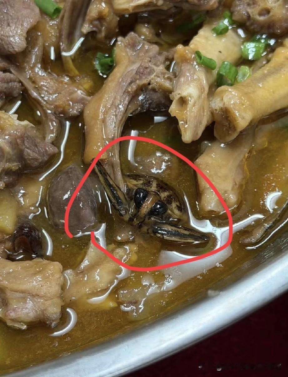 广东的桂花蝉焖青头鸭我是真下不去嘴 被广东朋友拉去吃特色菜,端上桌的那一刻我直接瞳孔地震!这盆桂花蝉焖青头鸭,金黄的汤汁里埋着蝉的脑袋,鸭肉和蝉混在一起炖煮,光看着我就头皮发麻,中午愣是一口没敢动。 朋友还一个劲劝我尝,说这是当地的地道美味,桂花蝉自带的鲜香能能给鸭肉提味,营养还丰富。可我看着汤里的蝉头,满脑子都是小时候被蝉鸣支配的恐惧,哪还敢下筷啊。 都说广东人在吃的方面天赋点满,天上飞的、地上爬的都能变成菜,今天算是见识到了。这道菜在老广眼里是珍馐,在我这直接成了“黑暗料理”天花板。