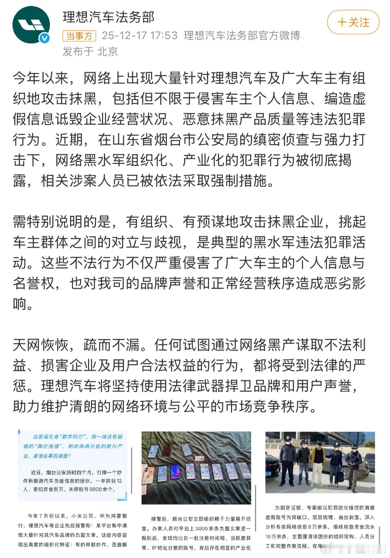 黑产操纵8000余个账号抹黑小米华为理想小米被黑,理想被黑,大家都能看到的。理想每一次新品,都有那么一些声音出来。小米就更不用说了,长期招黑体质,小米应该都习惯了。可恶意抹黑是一回事,8000多个账号,得裂变出来多少浏览和播放,得造成多少不好的影响?难以想象!包括央视等在内的各大媒体,也都先后报道过这个事情,但还是有些人恶意去做,真的很不应该。小米作为一家民营企业,发展到现在,是很不容易的。别有用心的人也是真的很猖狂,但凡有点什么事,都能白的说成黑的,或恶意说些什么话,刻意带节奏。不明真相的网友,往往很容易就相信了!这不是国产品牌第一次被黑,大家想想早十年前,在激烈的市场竞争中,很多国货品牌都被黑的体无完肤,甚至不得的不退出历史舞台。小米是大家看着一步一步成长起来的,从智能手机到汽车的每一步,我们都是见证者也是亲历者。小米也不止一次的表达自己造车的决心和态度,希望大家都擦亮眼睛,不要被误导了。同时,也请给小米等民族品牌一些信心和理解。