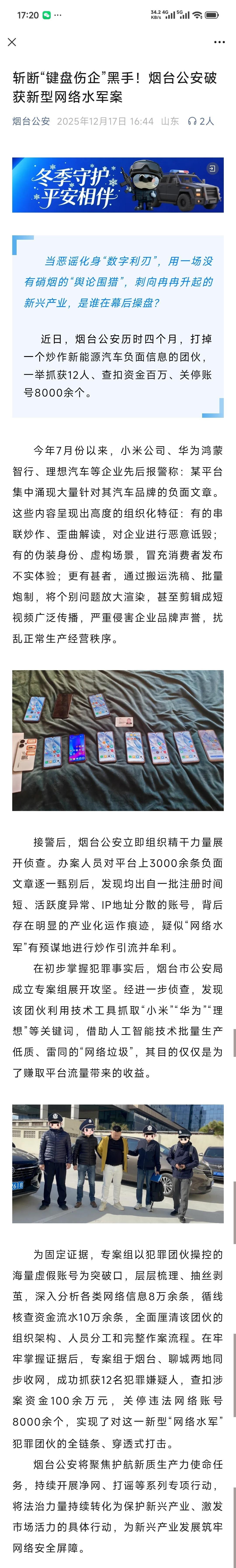 烟台公安破获新型水军案,斩断“键盘伤企”黑手!三家国内知名企业报警,烟台公安抓获