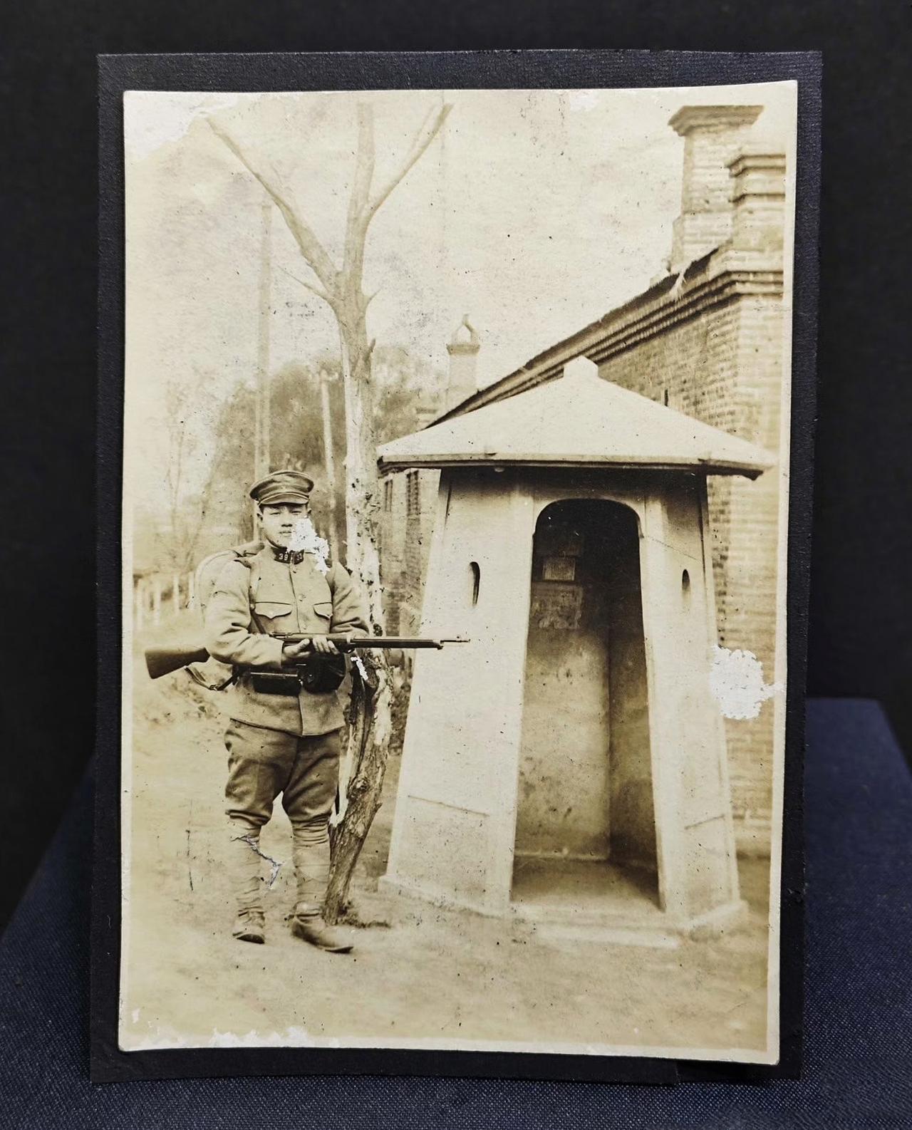这是一张反映日军城门口站岗时的真实历史照片。第一点,日军哨兵采用的持枪姿势就跟电视剧里面的不一样,不是背着枪,而是把枪横着放,抱着枪身,这样做有利于发现险情的时候可以第一时间出枪。第二点,日军的旁边配有一个小亭子,晚上的时候就躲到小亭子里面。电视剧里面那种八路军从后面突然袭击日军哨兵的情景就没办法实现,所以我们都被电视剧给骗了,真实的战场没有那么简单。