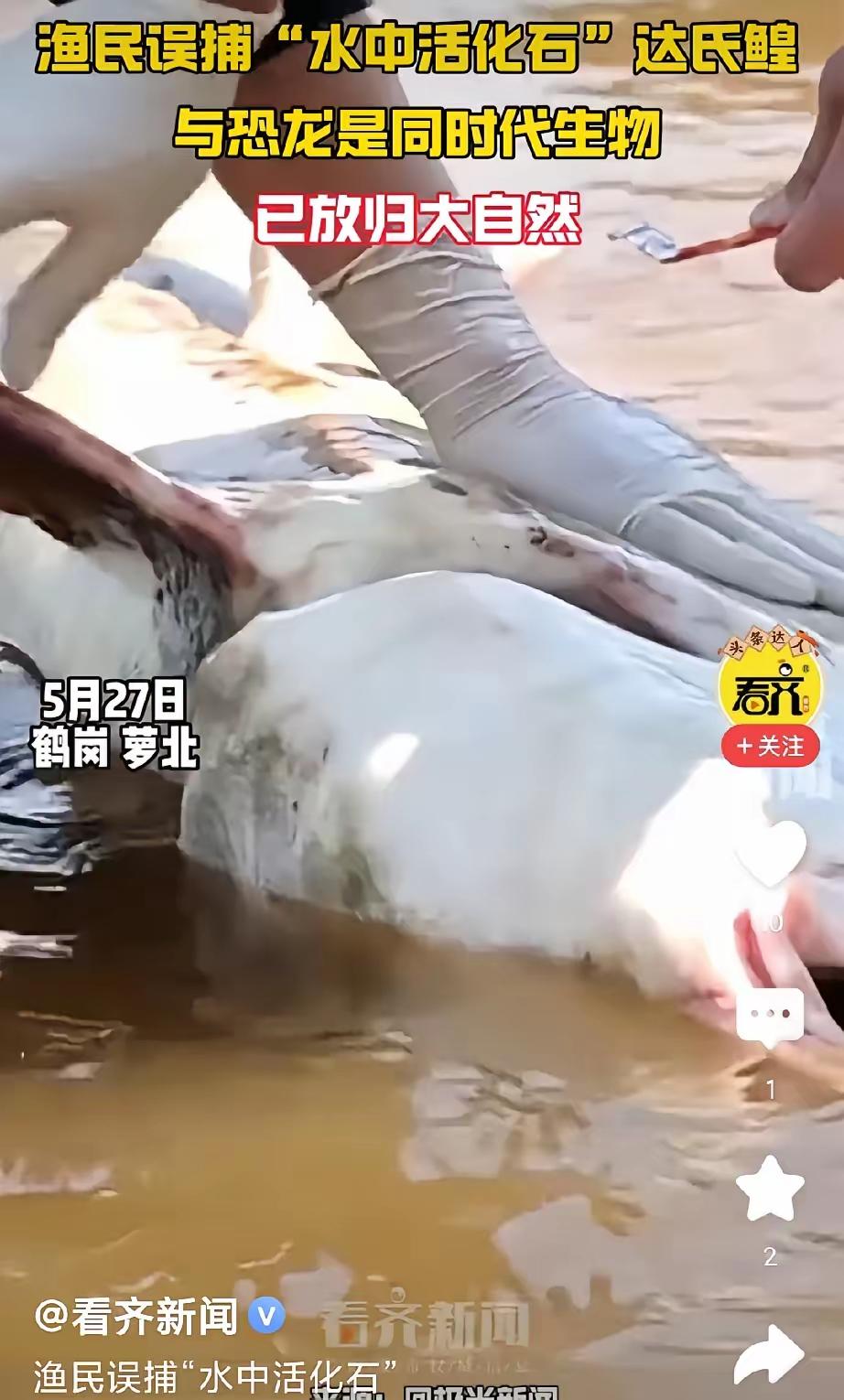 乌江岸边惊现“活化石”,体型巨大足足57斤! 太罕见了!近日,贵州乌江边有市民发现了一条搁浅的巨型怪鱼!它体长近1米,重量达到了惊人的57斤,外形看起来古老又奇特,现场所有人都惊呆了! 专家一鉴定,身份不得了! 这可不是普通的鱼,它竟然是有着 “水中活化石” 之称的中华鲟(或类似大型古老鱼类,具体以官方鉴定为准)!这类鱼和恐龙生活在同一时期,已经存在了上亿年,平时极难见到! 它为何会搁浅?背后原因要警惕! 如此珍贵的“活化石”现身岸边,很可能是因为生态环境变化、生病或受伤。这也给我们提了个醒:保护珍稀物种和水域生态,真的刻不容缓! 结局超暖心!众人合力守护! 幸运的是,发现者和相关部门反应迅速。他们小心翼翼地将这条大鱼转移到安全水域,进行了健康检查,并最终将它放归自然!这个举动赢得了网友一片点赞! 你觉得这样的“活化石”应该被放生,还是可以用于科研展示呢?如果你是发现者,会怎么做?评论区聊聊你的看法!鸭嘴中华鲟 神秘鱼类 鲟龙 海洋怪鱼