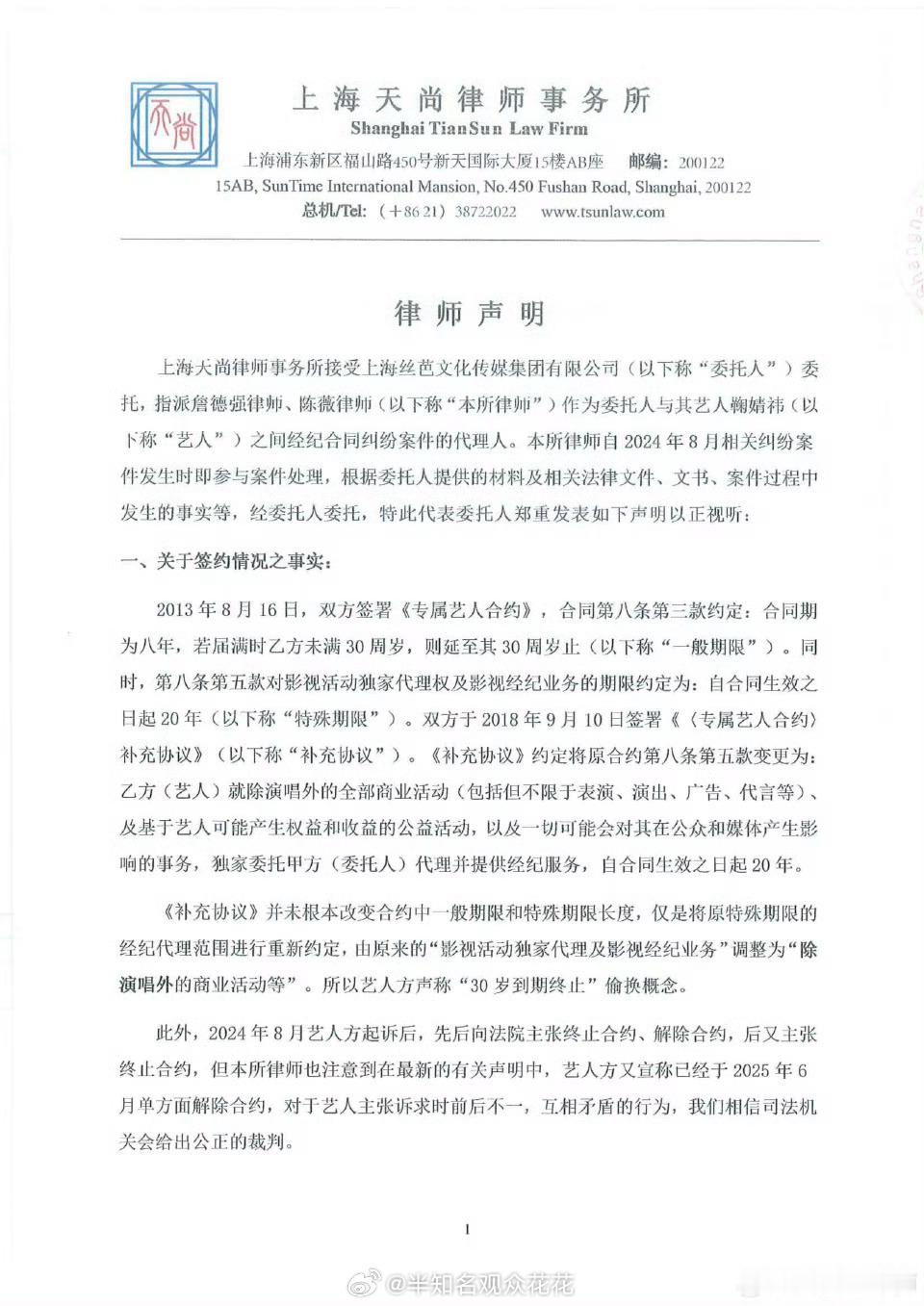 丝芭再发律师声明了丝芭再发律师声明回应鞠婧祎经纪合同纠纷