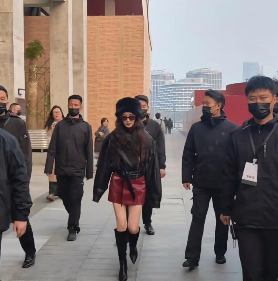 吴艳妮在成都穿着短裤大腿看起来很粗壮,表情自信又张扬