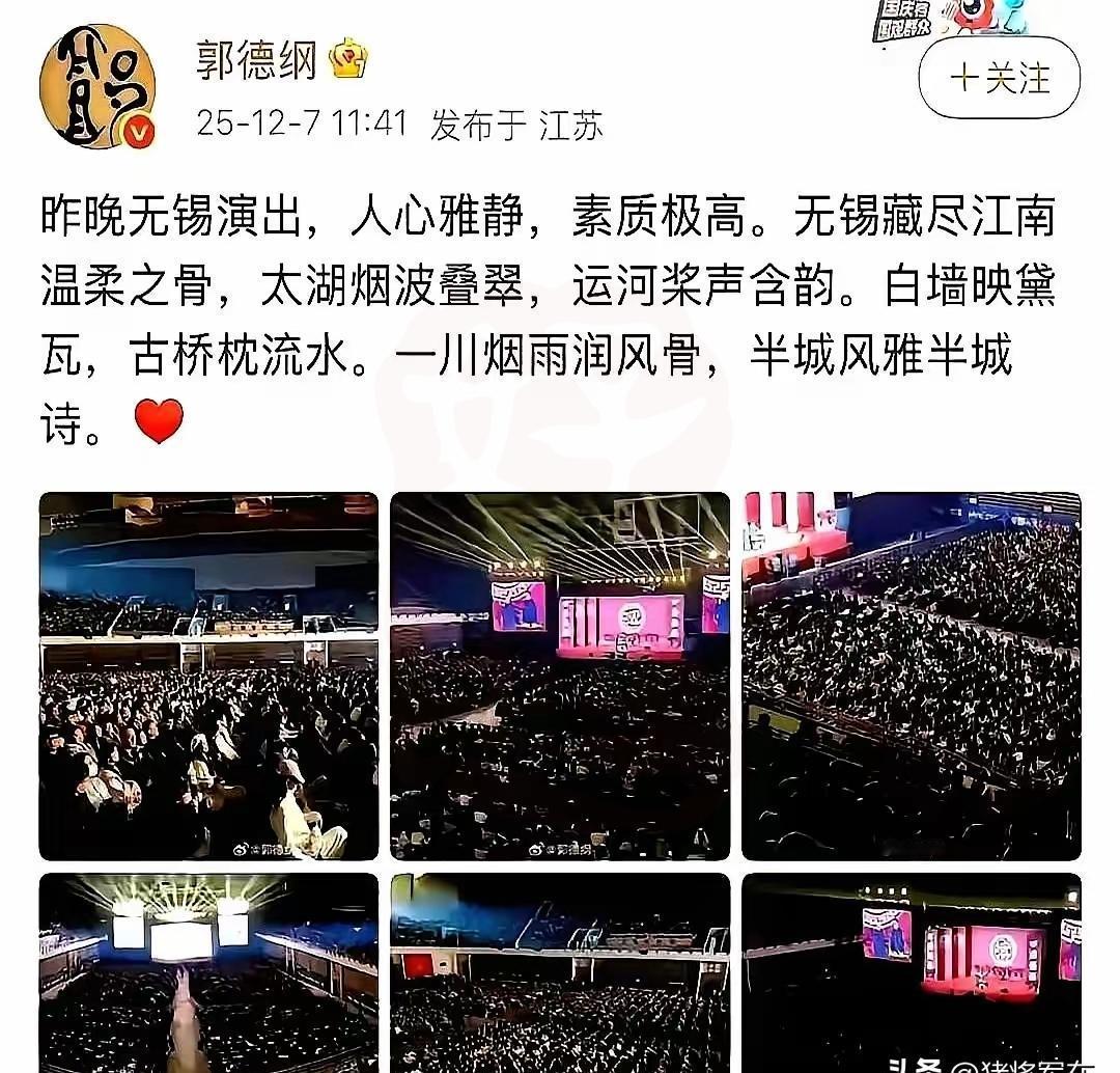 满座剧场照片配文“活得还行”,郭德纲在刀尖上跳舞。 你看那票一秒售罄,观众挤爆走