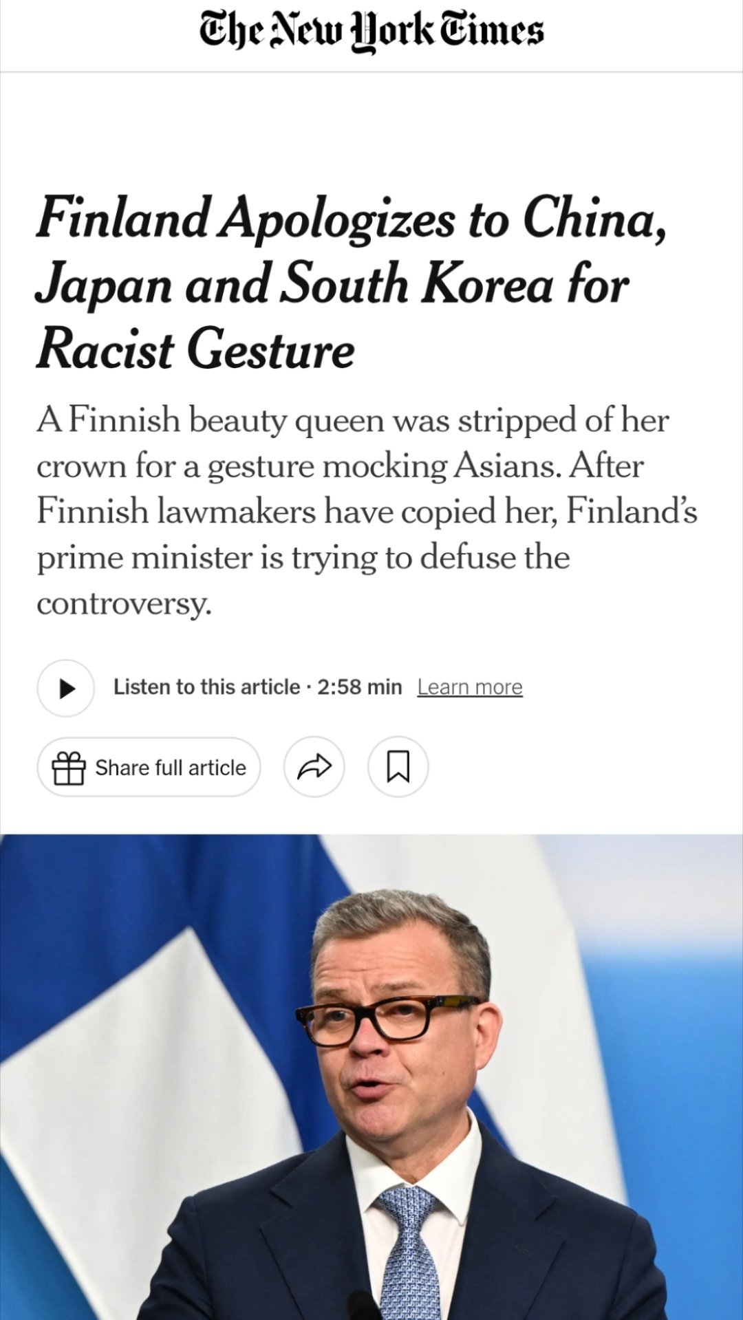 芬兰总理正式道歉从一开始就觉得芬兰政府会有担当。果然。¹ 每个国家都有大量种族主义者,但政府代表国家的颜面。国家行为体的举动更加重要。² 芬兰发了联合道歉声明,并且发了不同语言版本。不惯着、不迎合本国的民粹种族主义者,做得好。“这些帖子不代表芬兰的平等和包容价值观。我们向芬兰以及所有海外朋友传达的信息是,芬兰政府严肃对待种族主义问题,并致力于打击种族主义。”热点科普