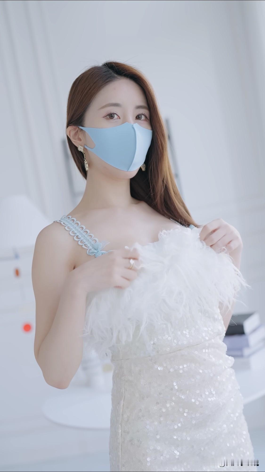 优雅黑纱装,粉色口罩下的神秘魅力
