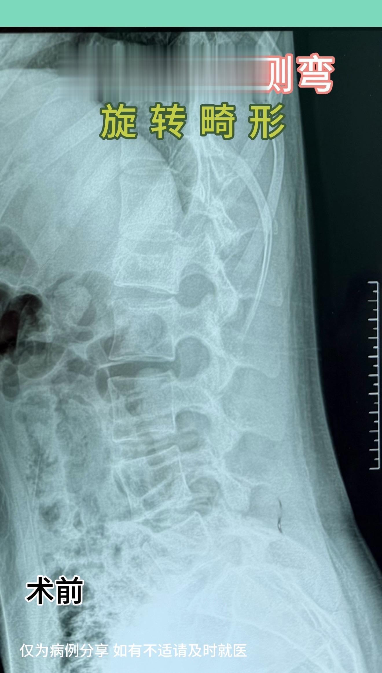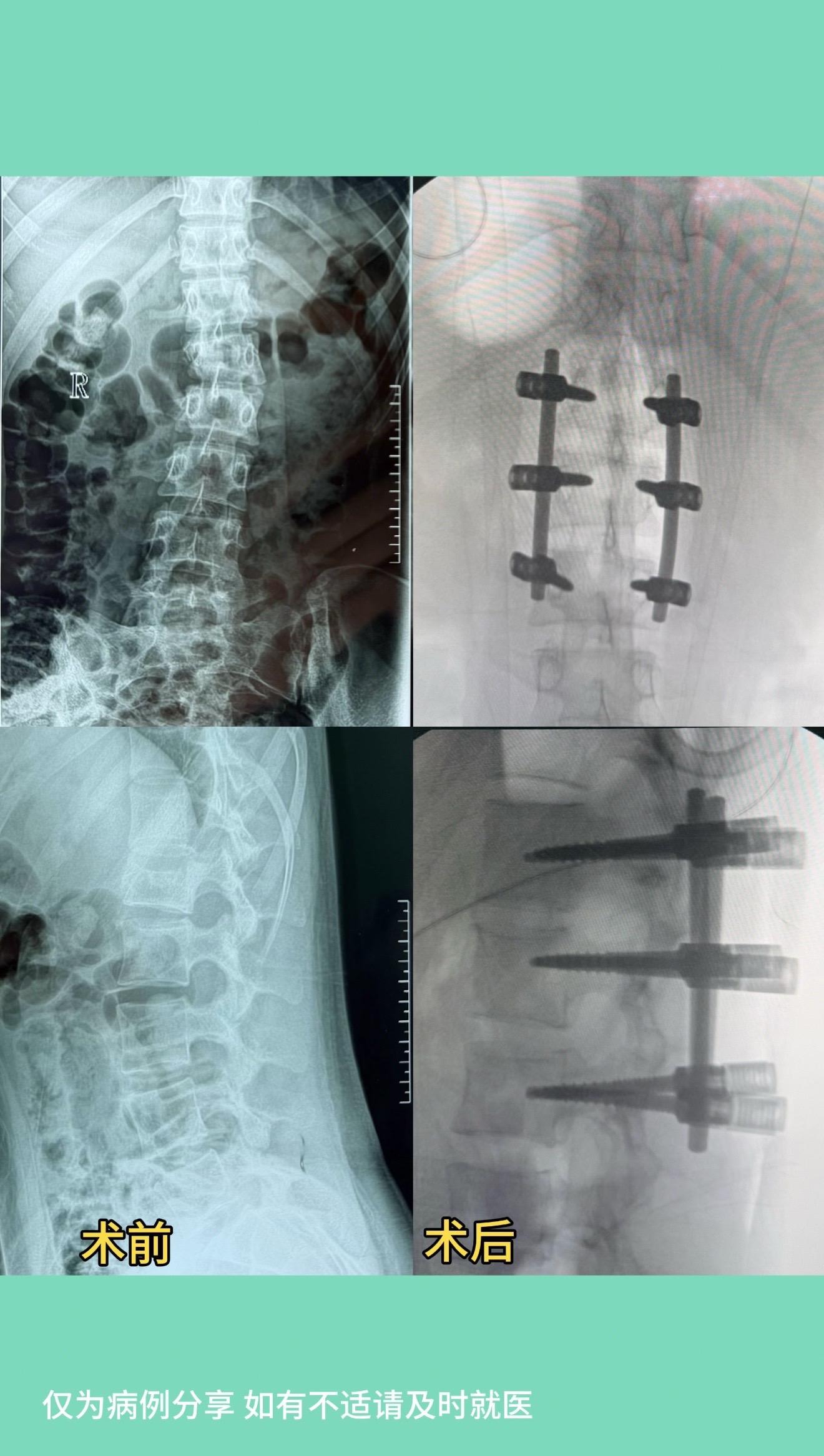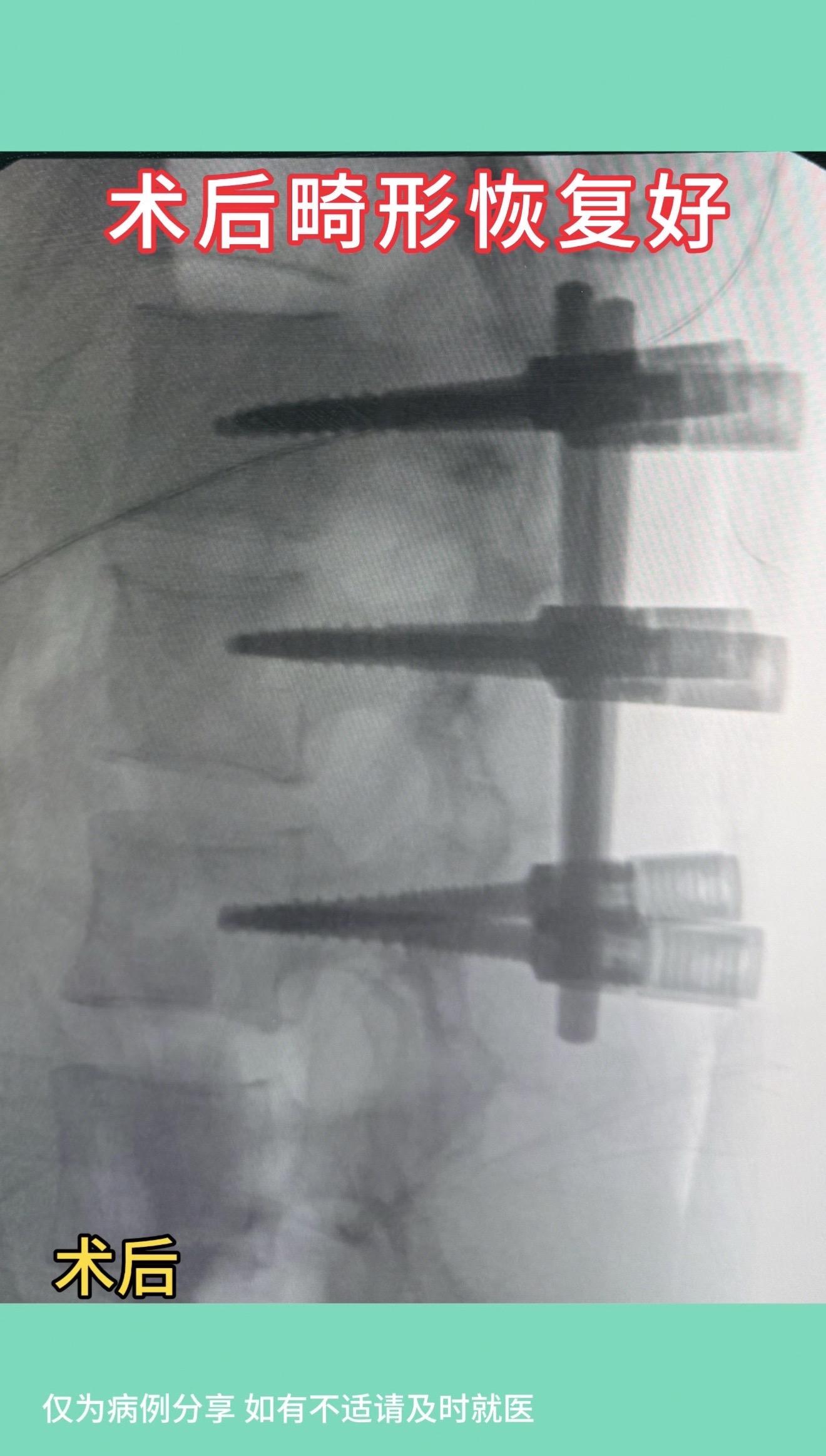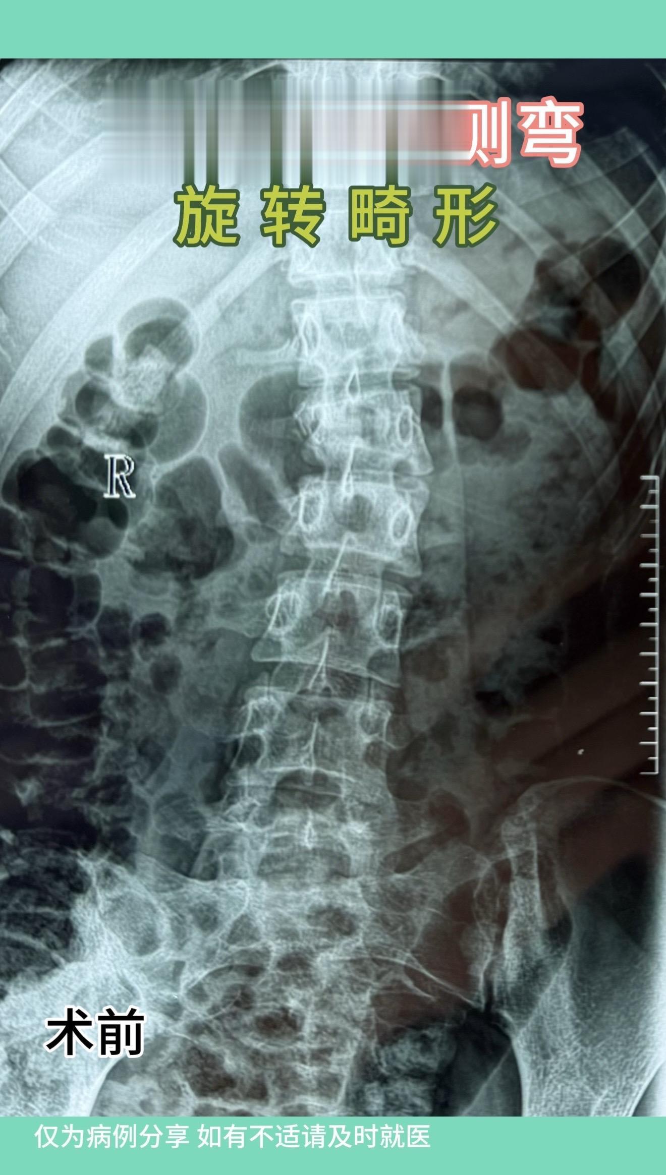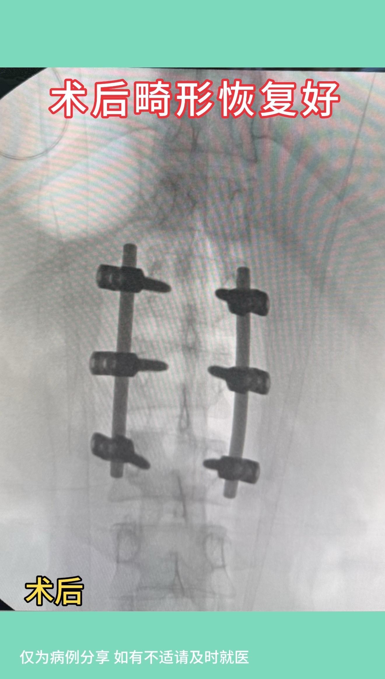 17岁女孩,车祸后腰1骨折伴侧弯,旋转畸形。术后畸形恢复好。