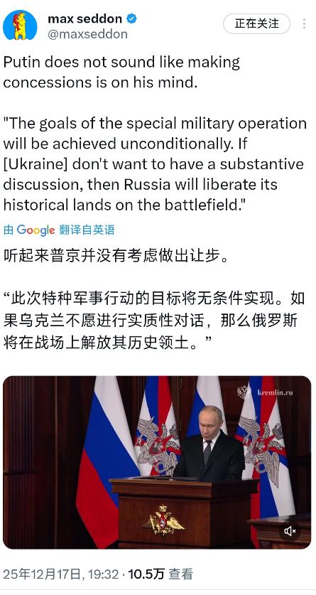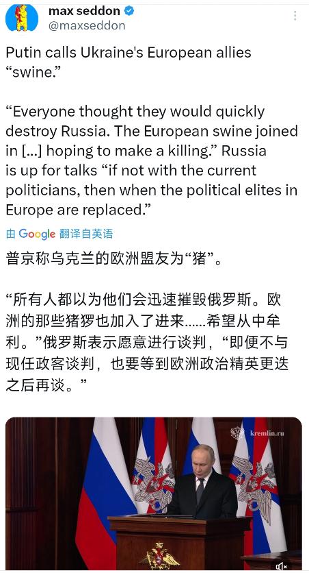 最新消息——普京:“此次特别军事行动的目标将无条件实现。如果乌克兰不愿进行实质性对话,那么俄罗斯将在战场上解放其历史领土。”普京还指出:欧洲的“小猪们”当时加入了拜登政府的阵营,希望迅速摧毁俄罗斯,并从中获利。 俄罗斯这次摆出的姿态很明确,谈判可以,但得是实质性的,不是那种敷衍了事的表面文章。乌克兰那边要是还想着靠西方援助拖时间,或者提些根本没法接受的条件,那干脆别谈了,战场上见真章。 普京说的“历史领土”可不是随便说说,从克里米亚到顿巴斯地区,俄罗斯早就把这些地方的战略价值算得明明白白,现在就是要用军事手段把这些筹码牢牢攥在手里。 欧洲那些国家当初跳得最欢,以为跟着美国制裁俄罗斯就能轻松分一杯羹,结果现在自己先扛不住了。能源价格飙升导致工业成本暴涨,德国这样的制造业强国都开始出现企业外流,法国的街头抗议就没停过。 更讽刺的是,欧洲国家一边给乌克兰送武器,一边还得高价买美国的液化天然气,这波操作简直是把钱包往美国怀里塞。俄罗斯看在眼里,嘴上骂着“小猪们”,心里其实清楚得很,欧洲的底气早就被掏空了。 战场上的形势现在对俄罗斯越来越有利。乌克兰的反攻折腾了几个月,除了丢下一堆报废的西方装备,基本没取得什么像样的进展。俄罗斯这边虽然也付出了代价,但战线却在稳步推进,特别是在顿巴斯地区,俄军正一步步压缩乌军的活动空间。 普京这时候放话要在战场上解决问题,显然是摸清了乌克兰的底牌——没有西方的持续输血,乌克兰根本撑不住多久。 美国这边其实也挺尴尬。拜登政府本来想借着乌克兰问题把俄罗斯彻底拖垮,顺便巩固自己在欧洲的影响力,结果现在发现俄罗斯的经济比预想的抗造多了。 西方的制裁确实让俄罗斯难受,但人家转头就把能源卖给了印度、中国,还拉高了全球能源价格,反而赚了不少。 欧洲国家现在骑虎难下,继续援助乌克兰吧,自己国内的经济压力越来越大;不援助吧,又怕被美国指责“背叛民主”。 乌克兰的处境就更艰难了。兵员损失惨重,弹药库存见底,连最基本的电力设施都经常被俄军炸瘫痪。 泽连斯基政府现在完全靠西方的贷款和援助过日子,但这种依赖性让乌克兰在谈判桌上几乎没有任何筹码。 俄罗斯看准了这一点,才敢说“无条件实现目标”,因为他们知道乌克兰根本没能力长期消耗下去。 普京提到的“历史领土”概念,其实是给俄罗斯的行动套上了一层合法性外衣。从克里米亚公投到顿巴斯独立,俄罗斯一直在强调这些地区与俄罗斯的历史渊源。 这种叙事不仅在国内能凝聚支持,在国际上也能争取到一些理解。毕竟,北约东扩早就让俄罗斯感到了安全威胁,现在反制回来,也算是师出有名。 欧洲国家现在开始意识到,自己可能成了这场冲突的最大输家。能源危机导致通胀高企,民众生活成本直线上升,而美国却在大发战争财。 欧盟内部现在分歧越来越大,匈牙利、斯洛伐克这些国家早就开始抱怨对俄制裁的后果,法国和德国虽然嘴上强硬,但私下里也在想办法缓和关系。俄罗斯正是看准了欧洲的这种分裂,才敢在战场上更加主动。 军事层面,俄罗斯的调整也很到位。刚开始的闪电战确实没打好,但很快稳住了阵脚,开始发挥自己炮火和后勤的优势。 乌克兰这边虽然得到了不少西方装备,但操作培训跟不上,后勤保障也跟不上,经常出现装备到手没多久就被俄军摧毁的情况。这种消耗战对乌克兰来说太致命了,毕竟他们的工业基础和战争潜力根本没法跟俄罗斯比。 普京这次的表态,其实也是在给西方划红线。俄罗斯可以谈,但底线不能碰,那些所谓的“历史领土”是俄罗斯的核心利益,谁也别想动。 要是西方还想着继续拱火,那俄罗斯就奉陪到底,直到在战场上把所有目标都实现。这种硬气背后,是俄罗斯对自身实力的自信,也是对西方虚弱的清醒认识。 乌克兰现在面临的选择其实很残酷。要么接受俄罗斯的条件,割让一部分领土换取和平;要么继续打下去,直到国家被打烂。 西方的援助不可能永远持续下去,毕竟欧洲国家的经济已经快撑不住了。俄罗斯看透了这一点,才敢在战场上步步紧逼,不给乌克兰任何喘息的机会。 这场冲突打到现在,其实已经变成了俄罗斯和整个西方阵营的消耗战。俄罗斯虽然被制裁,但靠着能源和粮食出口,经济基本稳住了。西方这边呢,美国还能撑,但欧洲已经快扛不住了。普京这时候放话,就是告诉西方,俄罗斯有的是时间耗下去,但欧洲不一定。