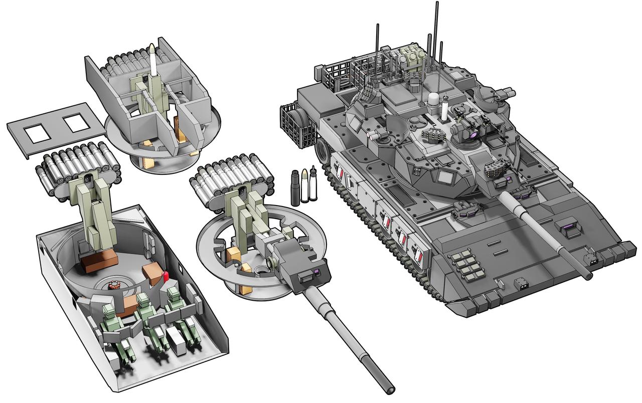 这是外国网友设计的一款AVTD轻型坦克和支援战车系统概念图。乘员位于坦克后部,驾驶员可选装带光纤的前置数字摄像头和加长型模拟潜望镜。在取得前线突破后,蜂巢坦克和无人机载机率先发起进攻,步兵运输车紧随其后。AVTD炮车调动拦截,减缓了坦克、步兵和无人机运输机追击后方部队/夺取战略防御阵地的速度。