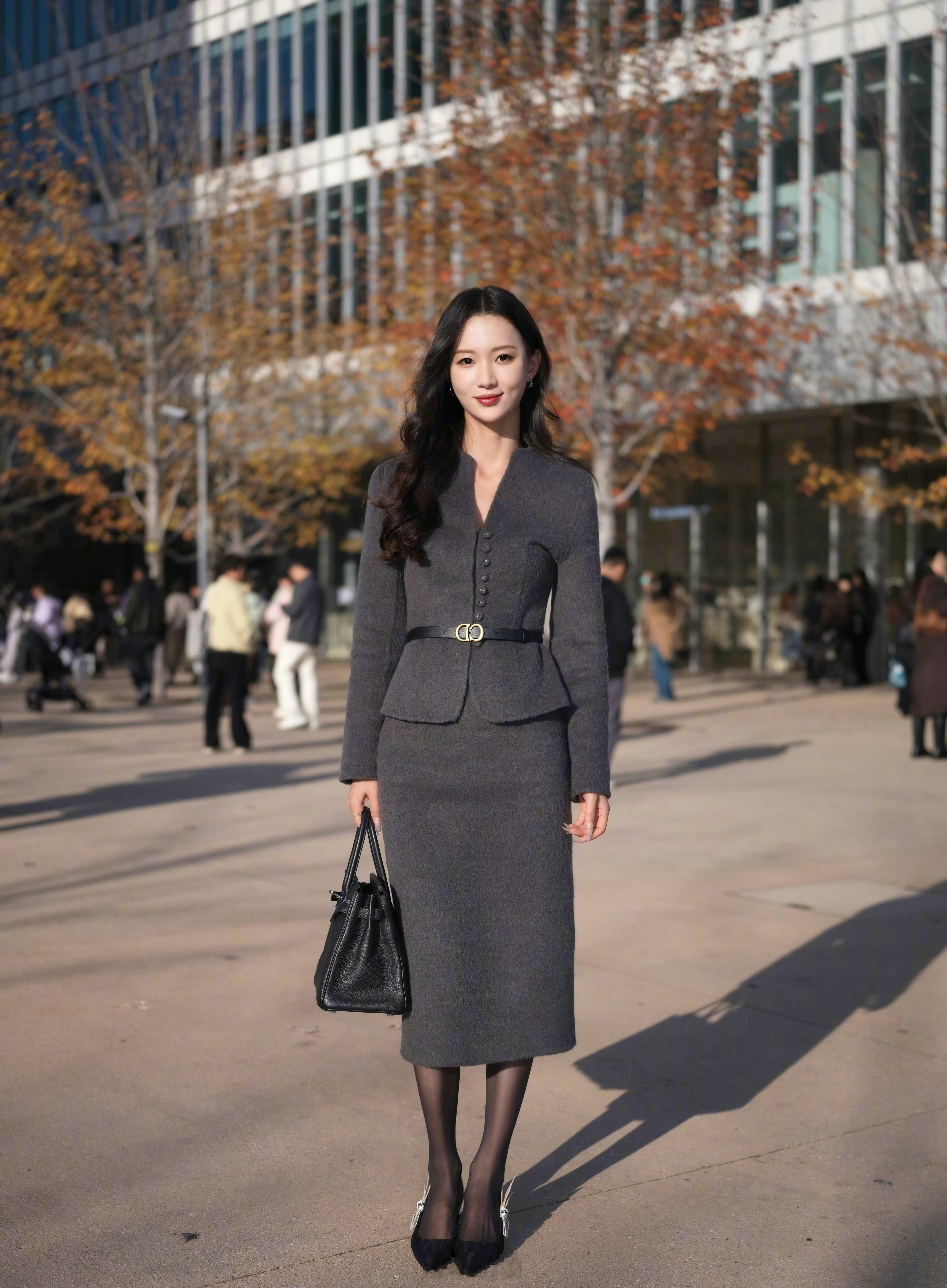 蒋欣是中年女人穿搭标杆,灰大衣搭浅蓝内搭太优雅蒋欣这身造型太圈粉!灰色大衣