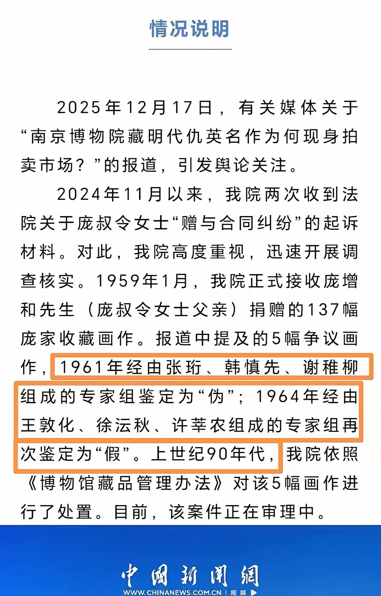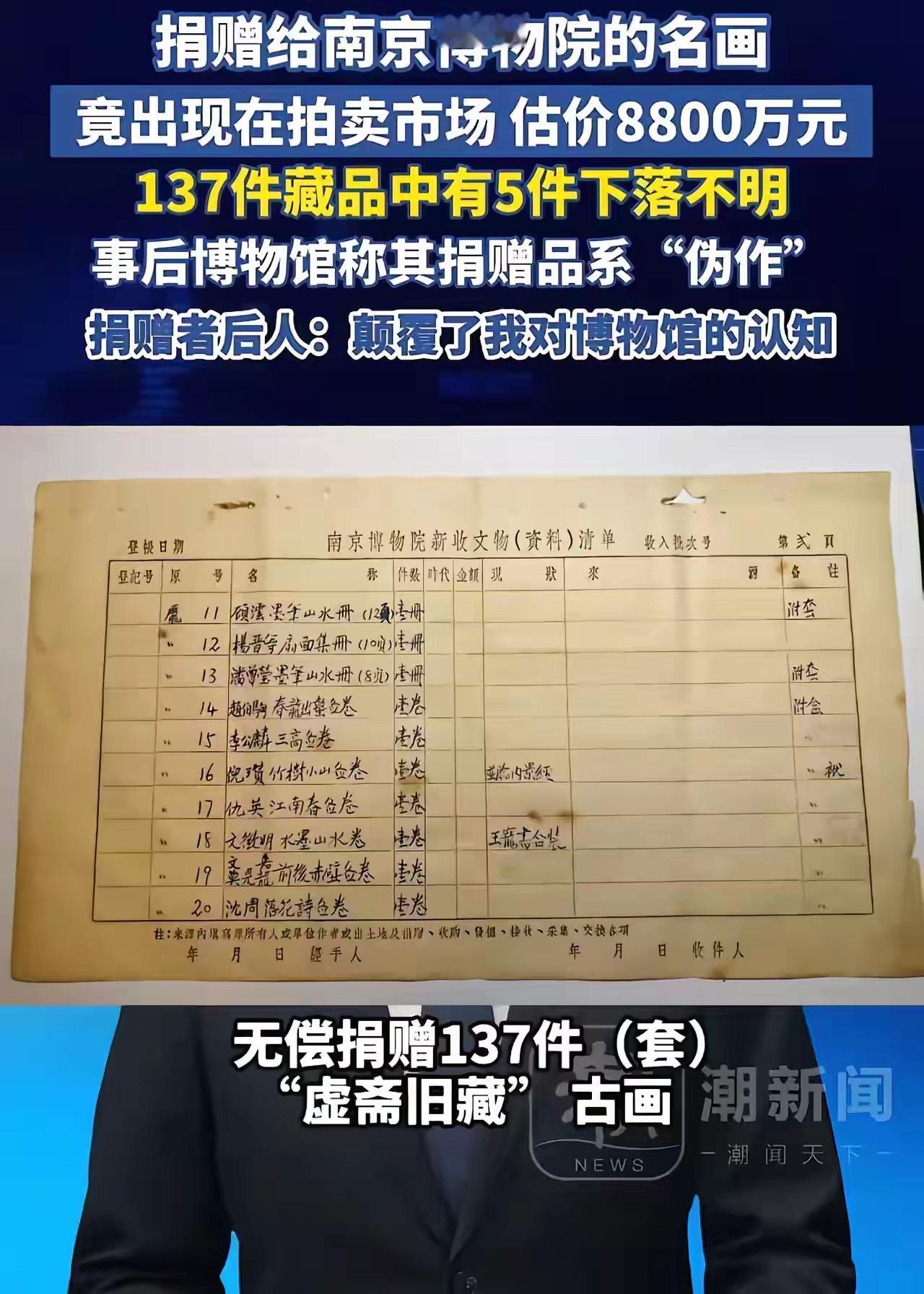 66年前,这幅珍贵的名画静静地安放在南京博物馆的展柜里,承载着无数文物爱好者的梦想与敬仰。谁曾想,今天却在拍卖市场上以8800万的天价赫然亮相!这究竟是艺术品的“失踪”还是一场精心策划的“交易”游戏?有人说,这就像“故宫一件我一件”,藏品的命运似乎早已被市场与利益绑架得无法自拔。 更令人震惊的是,事情还没有结束。文物部门在得知消息后迅速介入,最终成功将这场拍卖撤销,让这件曾经属于国家、属于公众的文化瑰宝回归“安全区”。可是,背后隐藏的深层次问题,却远比表面上的“拯救”更加令人担忧。 捐赠者的后人发出感慨:“我对博物馆的认知被彻底颠覆了。”他们的语气中夹杂着失望与愤怒,也透露出一种对未来的迷茫。这些收藏品,究竟是公众的资产,还是变成了某些人的“私产”? 这件事让人不禁反思:我们到底在守护什么?是那些千年古物的文化价值,还是被利益裹挟的“交易”游戏?面对市场的巨大诱惑,博物馆、文物部门该如何坚守底线?我们每个人,又该如何看待那些被“买卖”的文化瑰宝?难道文化遗产的归属权,只能由市场的规则来决定吗? 或许,这次事件只是冰山一角。背后隐藏的,是一个我们不得不面对的现实——在金钱的驱使下,文化的“纯粹”正逐渐被侵蚀。我们不能只做旁观者,更不能让那些“利益”成为文化传承的最大障碍。 文化遗产,是我们共同的记忆,是民族的根。我们需要的不只是保护,更是坚守。别让金钱成为文化的“终结者”,让我们一同呼吁——用心守护每一件文化瑰宝,让它们在阳光下,焕发出永恒的光辉。