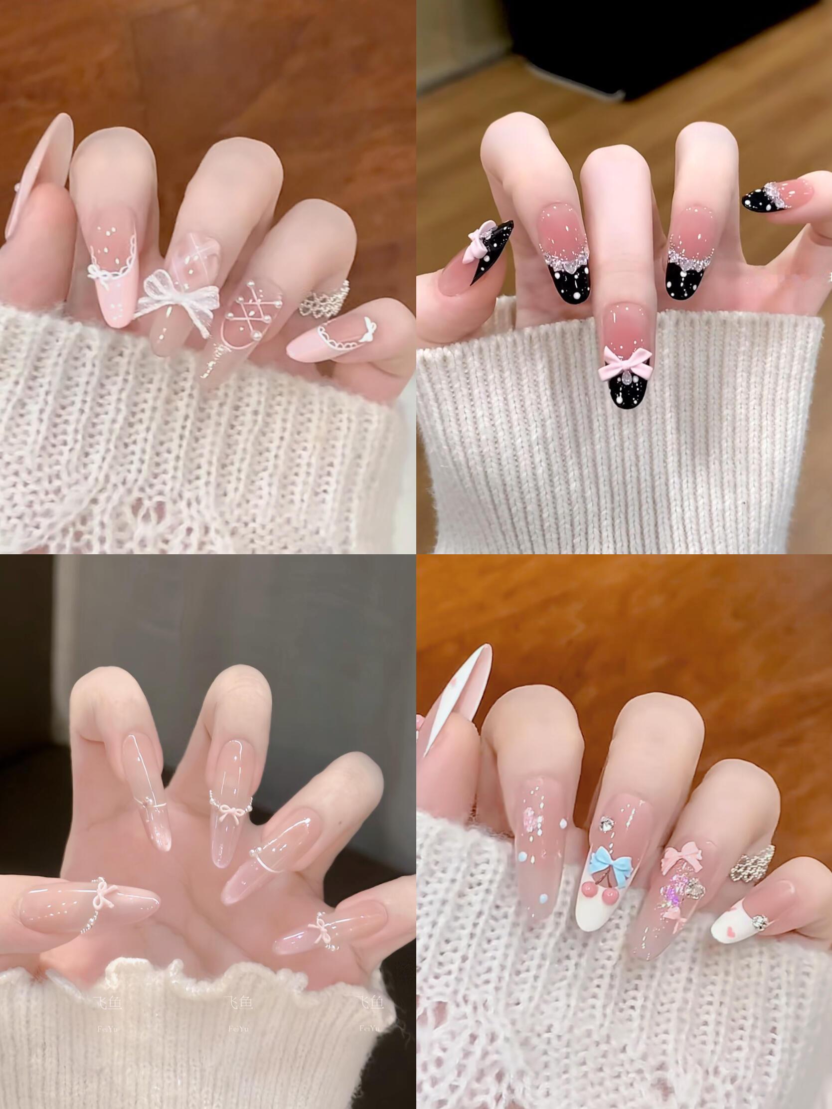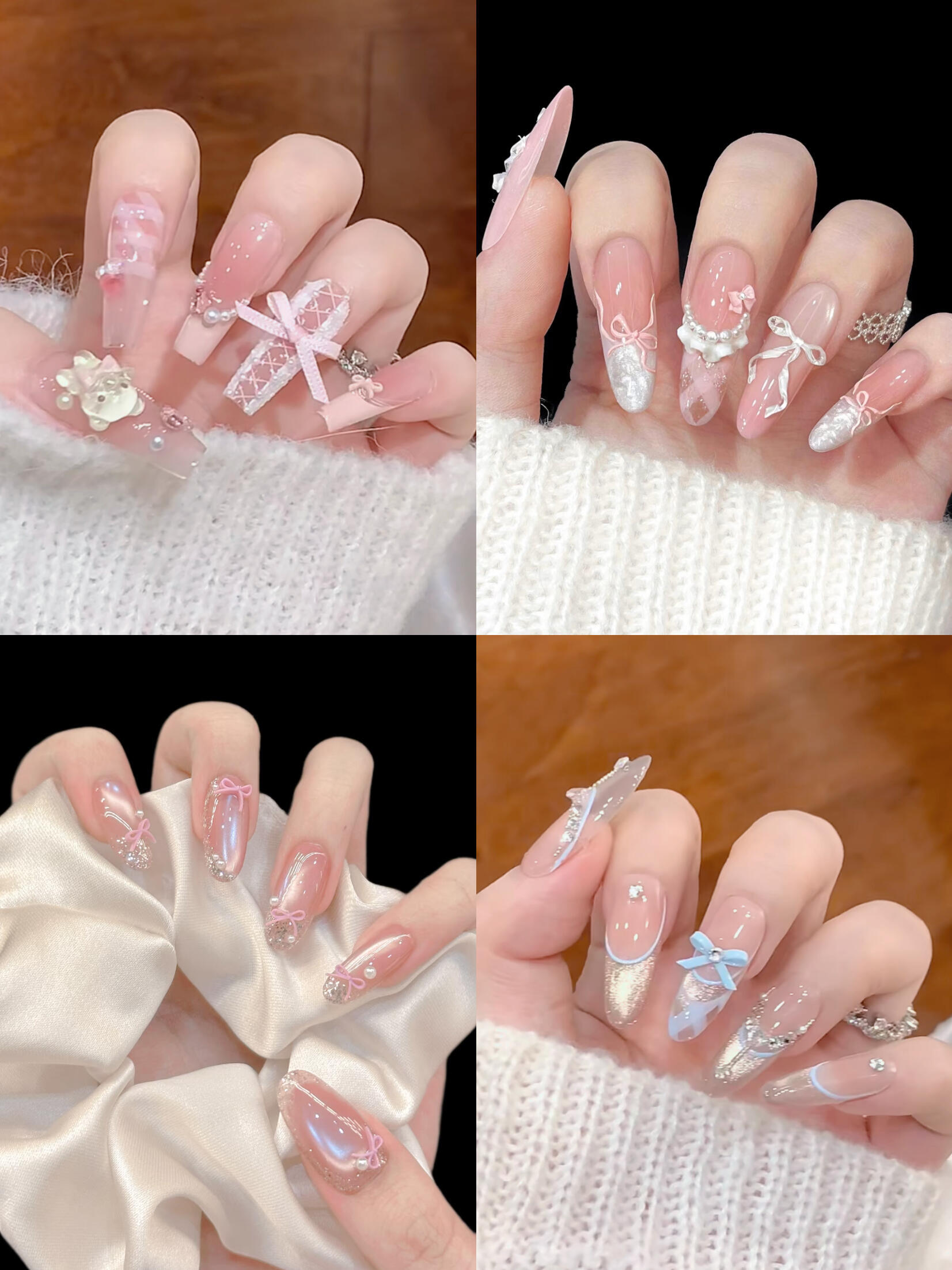 蕾丝蝴蝶结美甲 🍧也太甜了吧