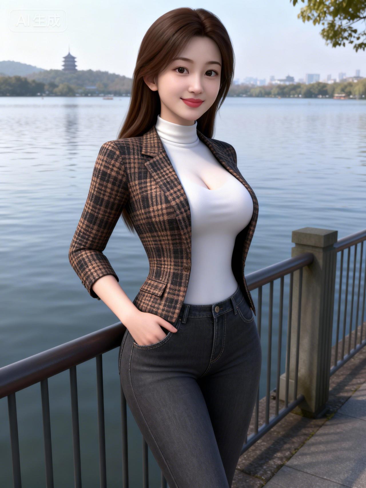 秋日穿搭指南,格纹西装外套搭配高领白T,简约又时髦!🍂👗👠