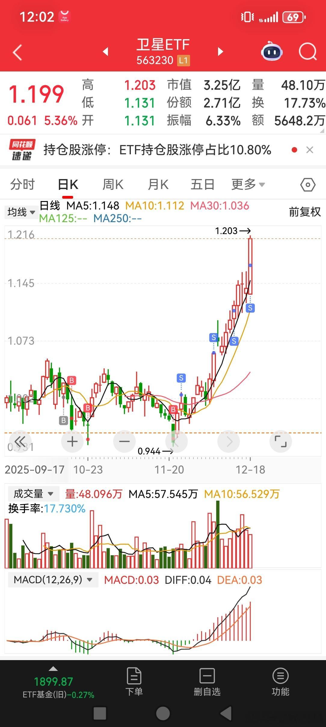 2025/12/18卫星ETF卫星ETF强势上涨,最近一个月涨幅超25%,是时候追涨了。