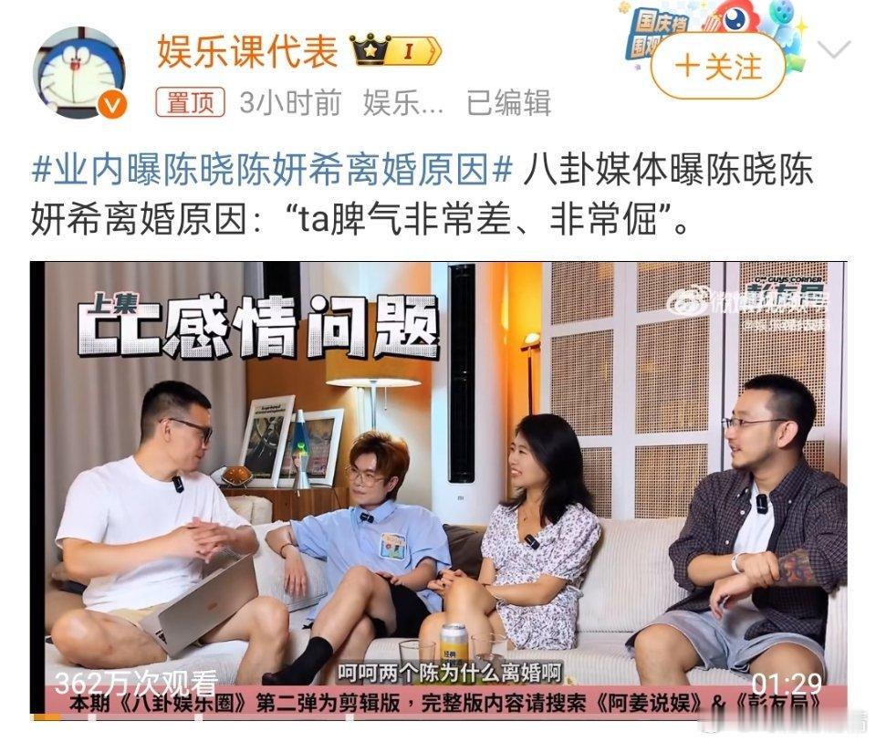业内曝陈晓陈妍希离婚原因谁脾气非常差,非常倔?只知道ta是老烟枪……