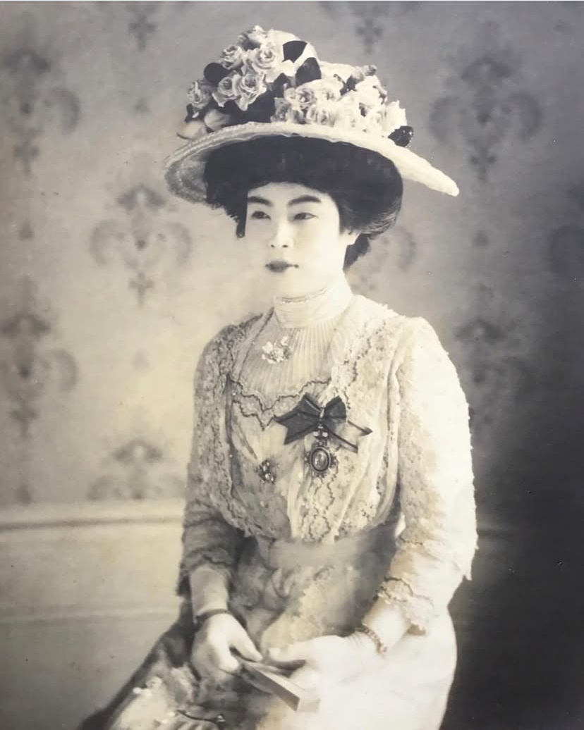 【来自投稿】日本北白川宫武子女王(1890-1977,日本旁枝亲王之女封女王,相当于中国的郡主或县主),她是北白川宫能久亲王的庶女, 1909 年以最优等成绩毕业于学习院女学部日本文学系,成为皇族中第一个以第一名毕业的人,并在1938年到1967年间担任香淳皇后良子的女官长。武子21岁时嫁给子爵保科正昭,婚后名保科武子,育有独子保科光正,保科光正1945年死于阿波丸号被美军鱼雷击沉事件,终年30岁。投稿