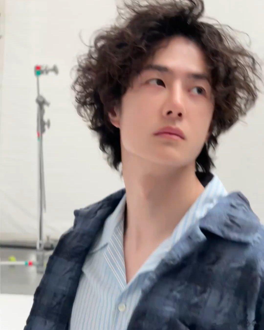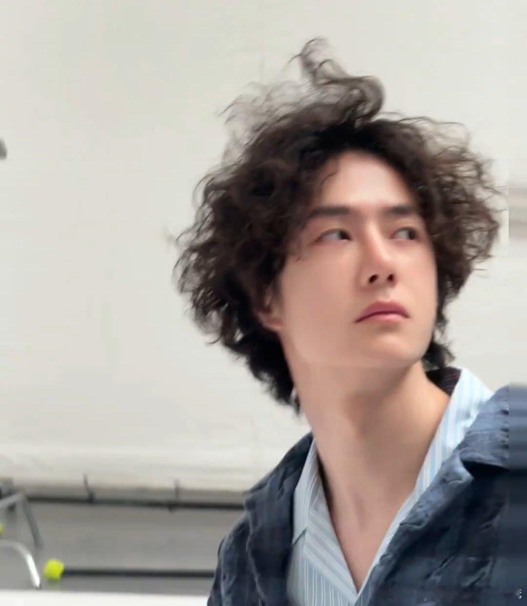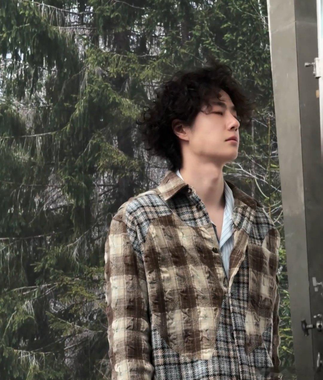 王一博卷毛衬衫造型好帅气的清爽男孩