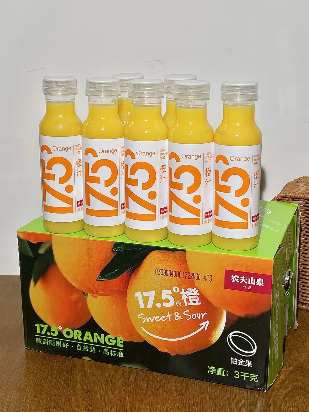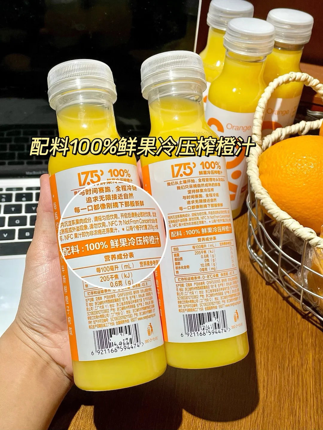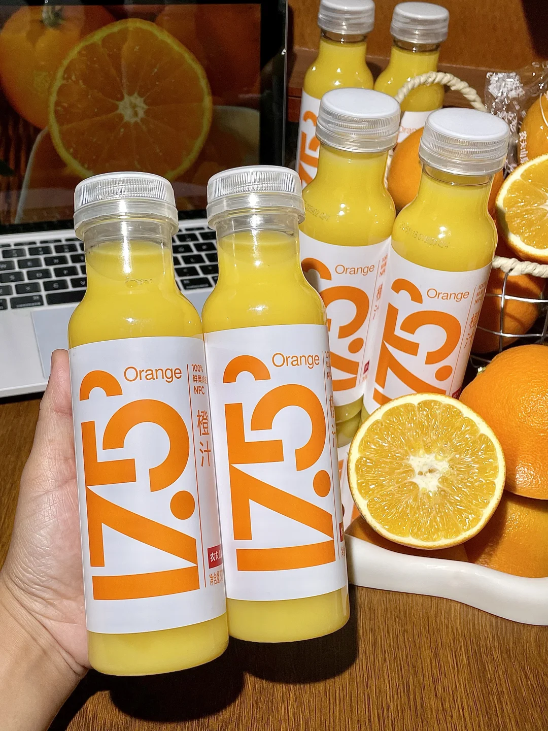啊啊啊!激动的心颤抖的手!! 买的17.5°NFC橙汁终于到货了 口感特别新鲜清甜超级爱喝。 一瓶橙汁是用三个半新鲜橙子🍊榨的,不加一滴水,💯这一瓶含金量谁喝谁懂!! 全程冷链运输,100%鲜果冷压榨,拿到手还是冰冰凉凉滴! 一打开橙子🍊的清香扑鼻而来~ 趁鲜果季还买了它家的17.5°鲜橙!橙汁里面就能喝到的那个17.5°橙!! 口感巨新鲜,不夸张,这跟直接吃树上刚摘下来的橙子口感没有区别~ 橙子都是树上自然成熟的,酸甜平衡的刚好😌! 还没有吃过的姐妹一定要试试,真就是产季卖完就没了!!