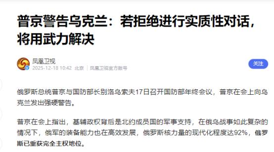 太强硬了!普京在俄国防部扩大会议上发表讲话直接向乌克兰发出警告,普京强调,如果乌克兰拒绝通过实质性对话解决问题、继续拖沓,俄军将采用自己的方式继续解放更多的历史领土。 此外,普京还向外界披露,在即将过去的一年时间,俄军已经解放了300多个居民点,并且在整个前线牢固掌握了战略主动权,俄罗斯“海燕”导弹与“波塞冬”无人潜航器已成功完成试验,而且已经全部实现了列装。 这话一出口,不管是乌克兰还是背后撑腰的西方,估计都得掂量掂量分量。毕竟现在的俄军可不是空口说白话,这一年来实打实的推进摆在那,从春季开始到现在,陆续拿下的居民点加起来都超三百个,光春夏阶段就解放了149个,连顿涅茨克的红军城、哈尔科夫州的沃尔昌斯克这些战略重镇都收入囊中。 尤其是红军城,作为曾经乌军的后勤枢纽,控制着通往顿巴斯前线的铁路和公路,拿下这里直接切断了乌军在该区域的补给通道,也为后续推进打开了口子,沃尔昌斯克一丢,乌军北线防线更是直接被打乱。 攥着战场的主动权说这话,底气自然足得很。普京在会上明明白白表示,俄军目前在整个俄乌冲突前线都牢牢掌握着主动权,就算是西方专门训练的乌克兰精锐部队,照样被俄军击溃。 而且俄方压根没打算放慢节奏,明确说了有能力加快进攻步伐,迟早要完成扩大安全缓冲区的任务,把特别军事行动的目标彻底实现。能有这样的底气,除了前线将士的推进,更离不开新装备的加持,这也是普京特意点出“海燕”和“波塞冬”的原因。 这两款家伙事儿可不是摆设,都是经过实打实测试才正式列装的杀器。先说说“海燕”核动力巡航导弹,早在2023年10月就完成了最后试验,现在已经正式列装部队。 它最牛的地方在于用核动力推进,理论上根本没有射程限制,想打全球任何地方都没问题,而且启动速度极快,搭载的超小型核反应堆几秒钟就能运转起来。 普京都直言,这款导弹的射程超过世界上所有已知导弹系统,打击精度还特别高,后续俄军还打算研发更快的型号,速度可能突破三倍音速甚至达到高超音速。 接着亮相的“波塞冬”无人潜航器更让人忌惮,今年10月底刚完成关键试验,从潜艇上发射后成功启动核动力装置,还进行了一段时间的航行。 这款潜航器能潜到1000米深的海域,航速每小时能达到100到130千米,比现在所有的水面舰艇都快,而且隐蔽性极强,传统反潜武器根本拦不住。 更关键的是它能携带百万吨级当量的核弹头,不管是歼灭完整的航母战斗群,还是摧毁大型海军基地,都不在话下,目前已经投入量产,专门改装的潜艇就能搭载部署。 普京特意强调,这两款装备全部用的是俄罗斯国产材料,核心技术完全自主,它们的列装能确保未来几十年甚至整个21世纪的安全和战略平衡。 这话里的意味很明显,就是告诉西方,别想着靠军事施压逼俄罗斯让步,现在俄军的技术优势已经摆在这里,后续还会加快引入机器人技术、人工智能,进一步提升作战能力。 就在俄军方公布这些消息的时候,西方那边也没闲着,英法德意等11国刚表态要组建联军,打算给乌克兰提供安全保障,甚至考虑直接派兵。 面对这样的局势,普京的态度很明确,俄方不是不想谈判,反而一直准备通过和平方式解决问题,但前提是乌克兰得拿出实质性态度,不能一直拖着。 他直言2022年冲突升级的始作俑者不是俄罗斯,是西方支持乌克兰的破坏势力,俄罗斯只是想结束这场战争。 可现在泽连斯基那边依旧寸土不让,明确表示不承认顿巴斯和克里米亚入俄,这也让谈判陷入僵局。 不过从俄军目前的推进节奏和装备水平来看,要是乌克兰真不打算坐下来谈,普京说的“用自己的方式解放更多历史领土”,绝对不是随口说说的警告。 毕竟现在的局势对俄军越来越有利,美国已经终止了对乌克兰的“无休止”援助,欧洲内部对是否派兵也分歧不断,而俄军这边不仅稳步推进领土解放,战略武器还陆续列装到位。 普京在会上还透露,除了这两款杀器,“榛树”中程高超音速导弹年底前也会开始战斗值班,这款导弹射程能到5500公里,打击欧洲大陆的北约关键设施完全没问题。手里握着这么多硬家伙,又在前线占据主动,普京的警告自然掷地有声,接下来就看乌克兰和西方怎么接招了。